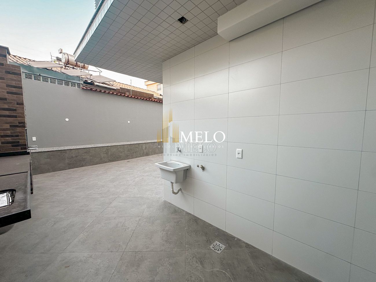 Sala para 2 ambientes; 3 quartos sendo 1 suíte; banheiro da suíte e social com box blindex e nicho na área de banho; cozinha estilo americana com bancada em granito café imperial; área de lavanderia externa área externa privativa ampla medindo aproximadamente 135m² com churrasqueira à carvão, bancada em granito e pré disposição para instalação de Jacuzzi; 3 vagas de garagem sob pilotis ,aquecimento solar instalado nos chuveiros;