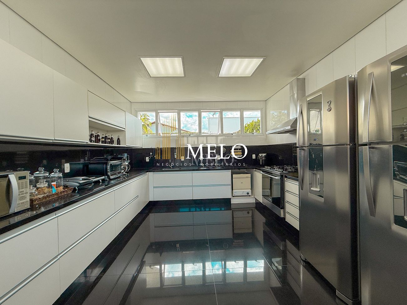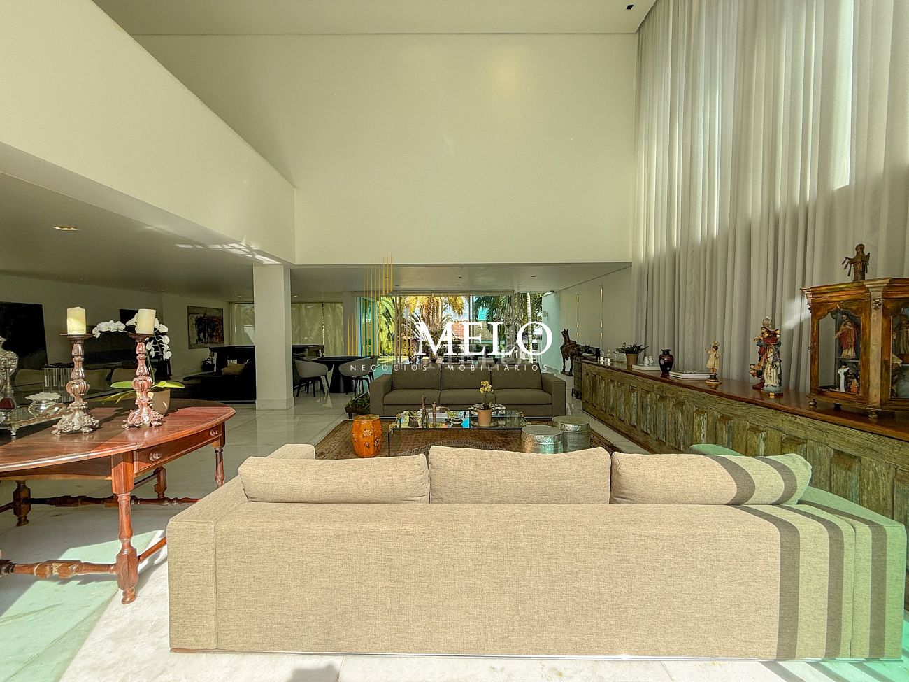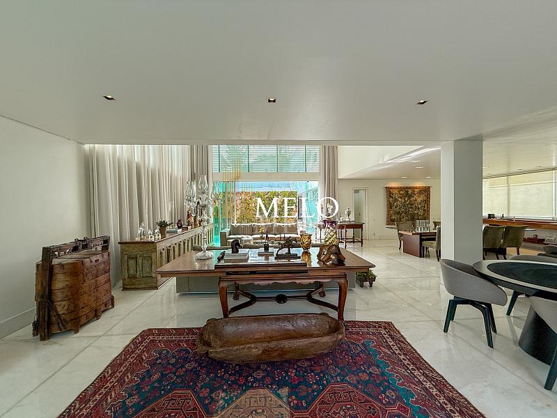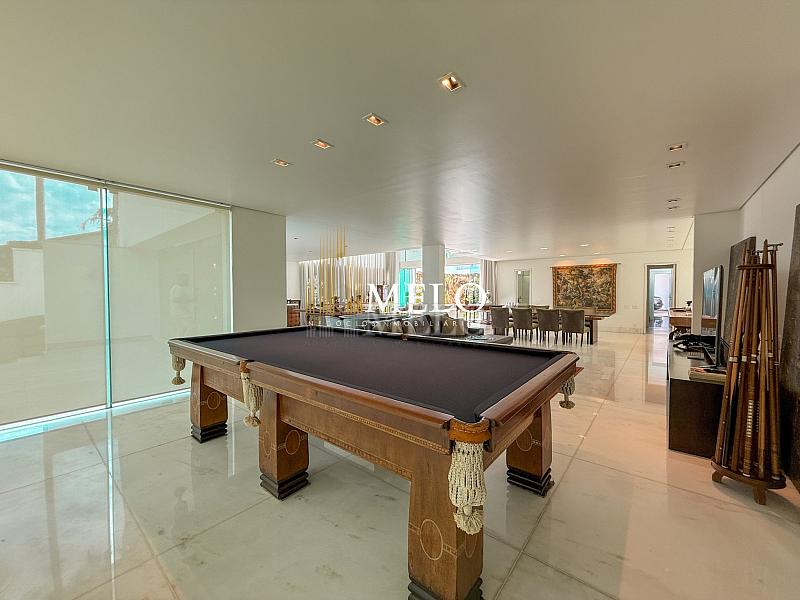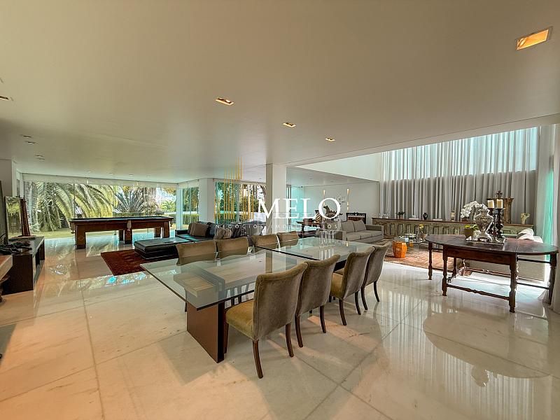 Primeiro Pavimento: Sala com pé direito duplo 4 ambientes , piso de mármore. Lavabo, Cozinha , 2 áreas de serviço, lavanderia DCE, dois quartos de empregada e banho. Quarto de despejo.