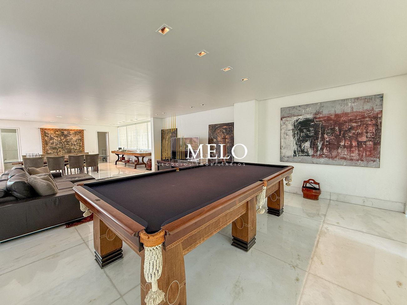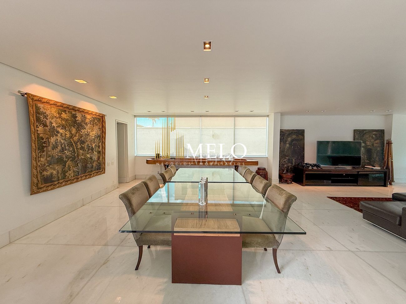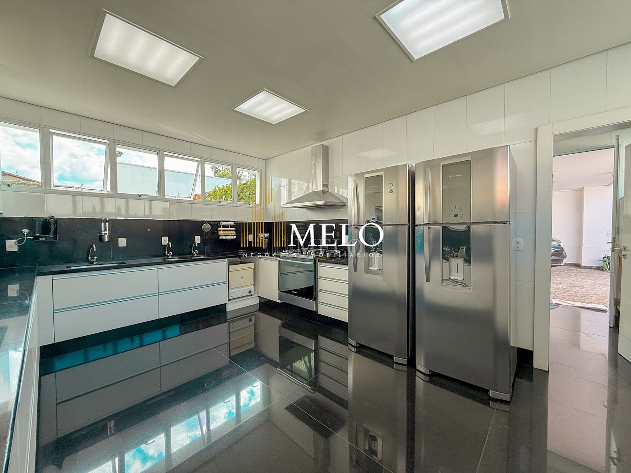 Primeiro Pavimento: Sala com pé direito duplo 4 ambientes , piso de mármore. Lavabo, Cozinha , 2 áreas de serviço, lavanderia DCE, dois quartos de empregada e banho. Quarto de despejo.