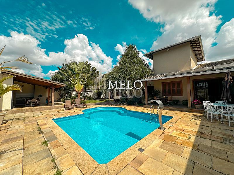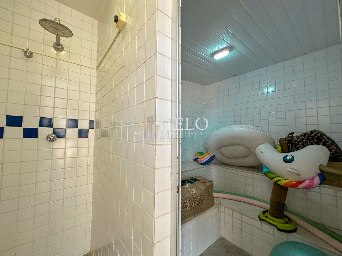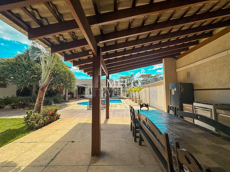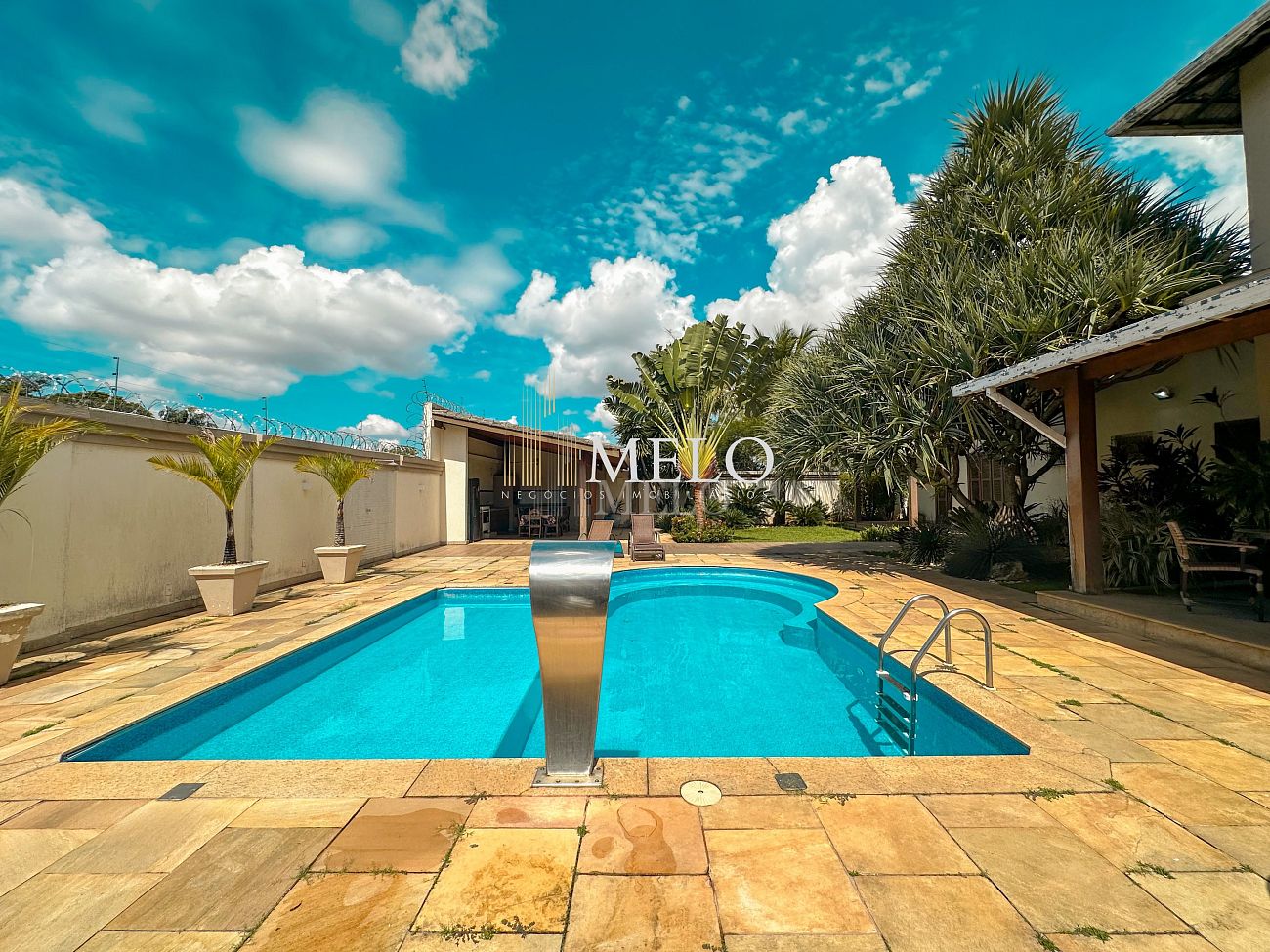 Área externa: Espaço gourmet com churrasqueira a carvão e forno, bancadas em granito, piscina com cascata, amplo salão com sauna e banheiro.