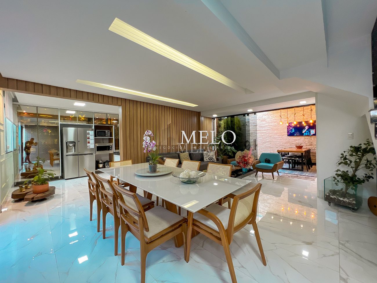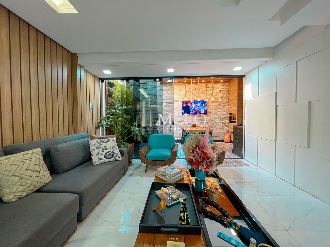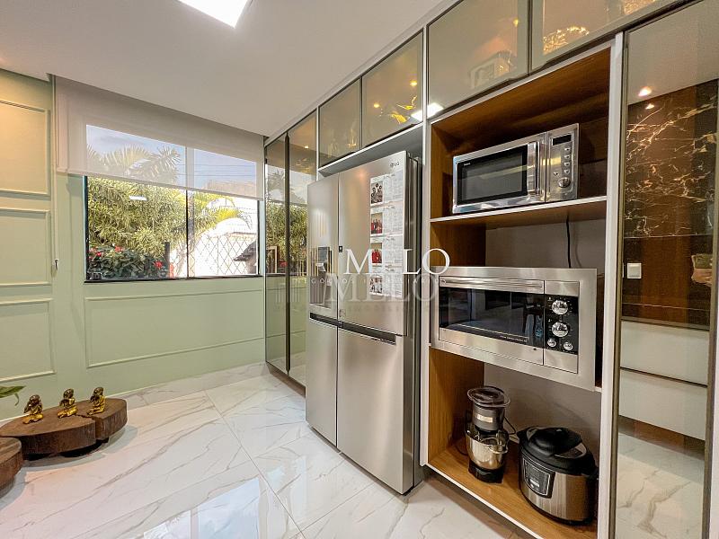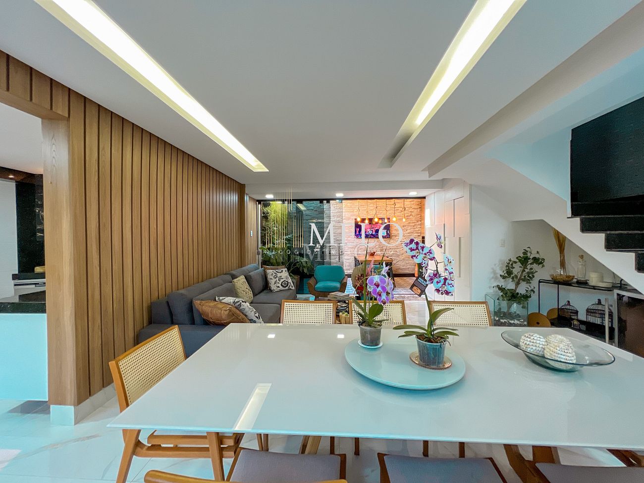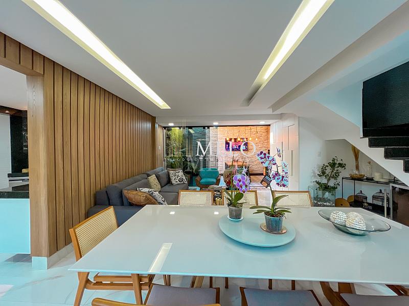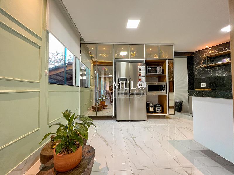 1° Pavimento: Sala para dois ambientes, lavabo, cozinha com fogão por indução e cristaleira espelhadas bronze, lavanderia independente. Espaço gourmet com churrasqueira, mesa de madeira de demolição, ducha, lindo jardim vertical e iluminação decorativa.