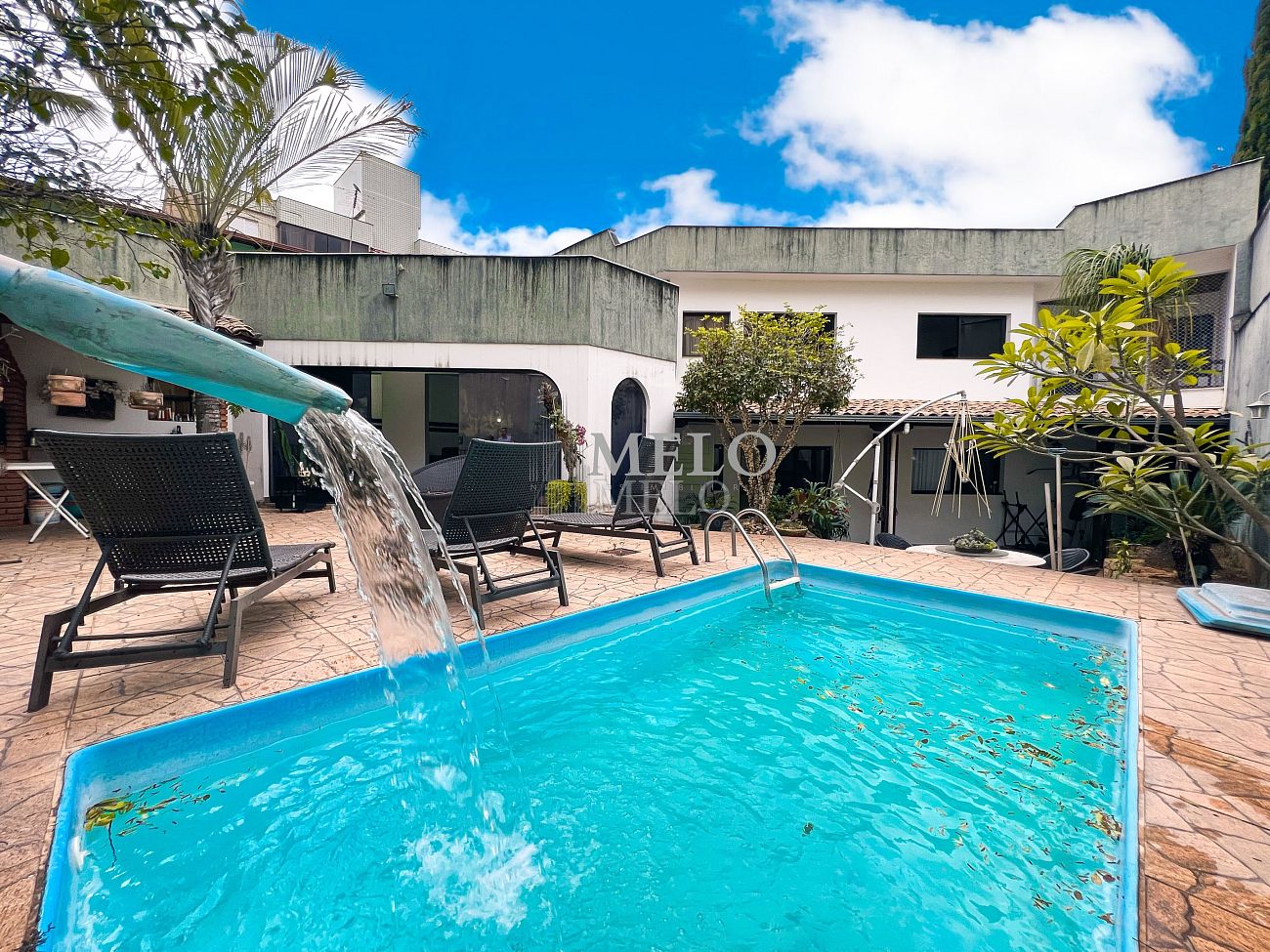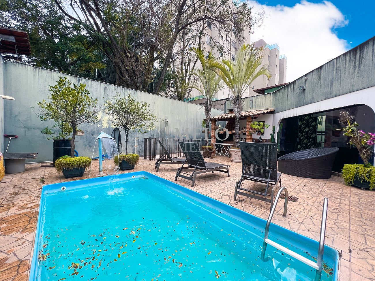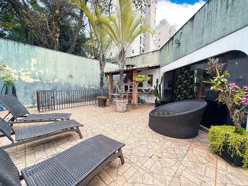 ÁREA EXTERNA: Quintal com piscina com cascata ; Ducha; Área gourmet com churrasqueira e pia de apoio ; Salão de festas ; Lavabo externo ; Sauna.