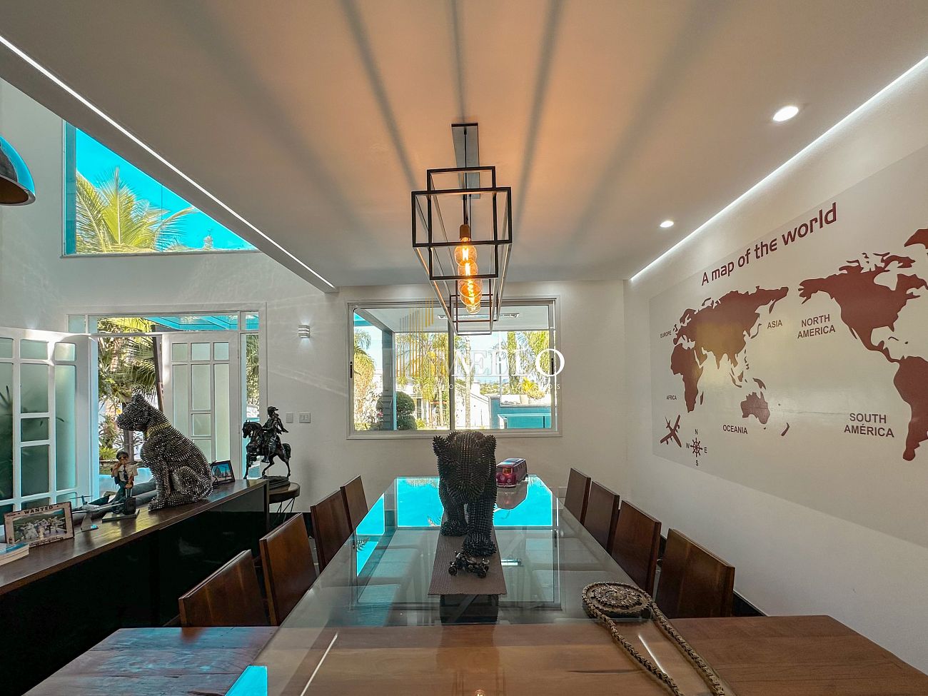 Excelente casa moderna com alto padrão de acabamento, em ótima localização, A casa foi reformada recentemente e possui aquecimento solar em todos os chuveiros e torneiras, bem como aquecimento para piscina. foi instalado sistema de automação residencial e todo sistema de segurança foi atualizado, ganhando também o sistema de energia fotovoltaico ,sala ampla para 02 ambientes , 05 quartos com armários , 05 suítes sendo 01 com Closet , 04 lavabos , 01 banho social , Cozinha planejada, dispensa , lavanderia , dependência completa de empregada , canil , guarita