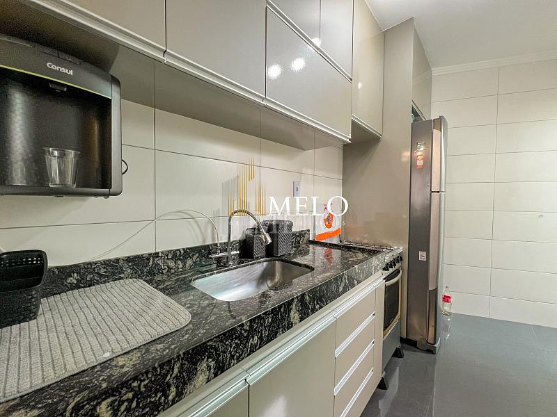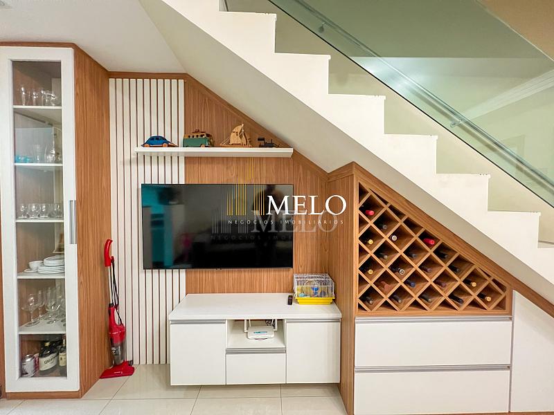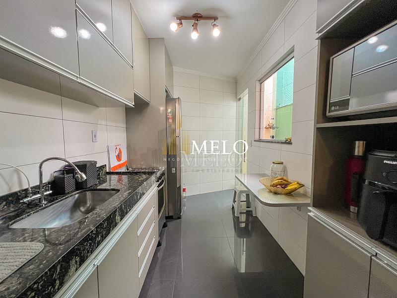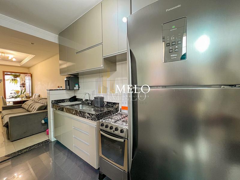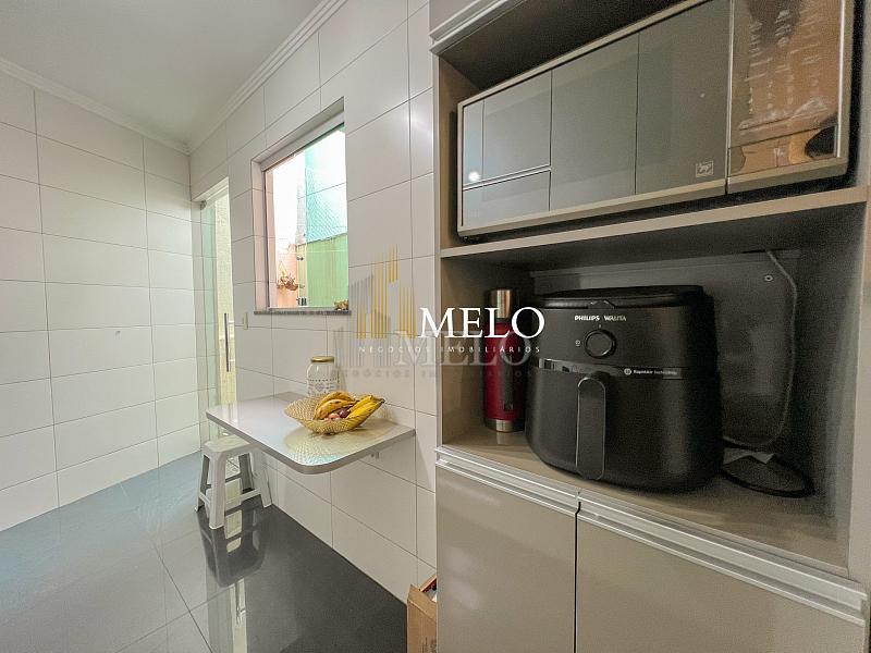 Casa com 2 quartos ambos com armário planejado, sala para dois ambientes com iluminação indireta e rebaixamento de gesso; banheiro social com bancada em granito, cuba da pia embutida, armário planejado, cozinha com bancada em granito, cuba da pia embutida e armário planejado; lavanderia;