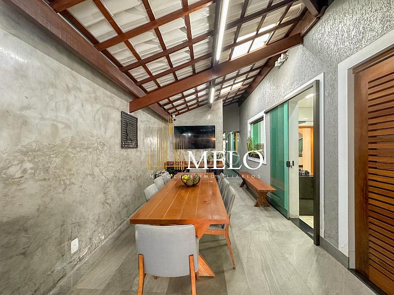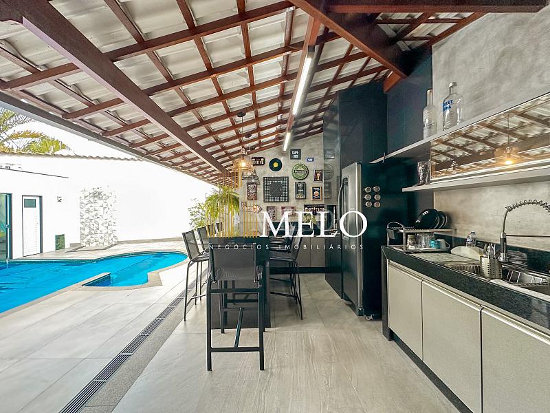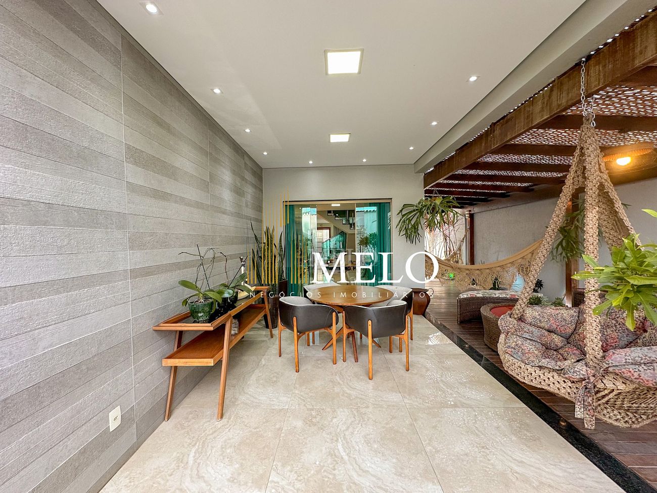 Casa contendo dois pavimentos com :Sala ampla para dois ambientes , Sala de Jantar , cozinha com armários , 3 quartos, sendo 2 suíte, armários nos quartos planejados , banheiros com armários e box , Área de serviço bem organizada com armários. Área externa com piscina e espaço com churrasqueira.