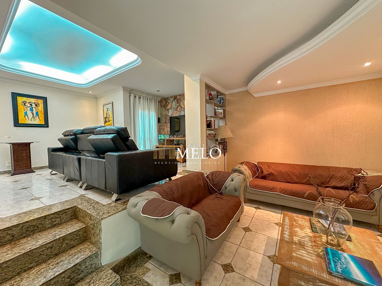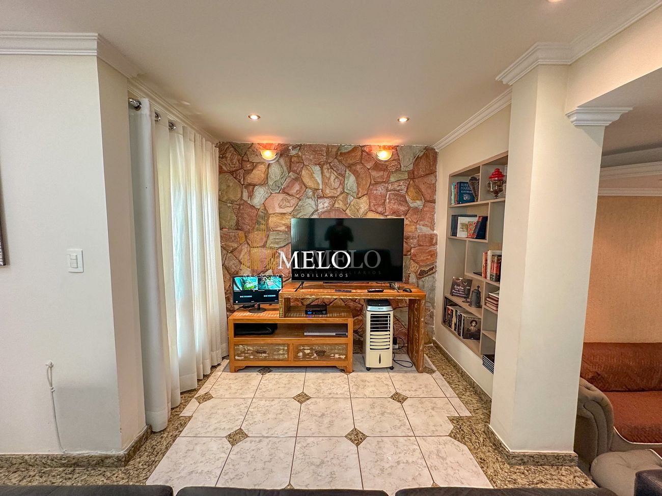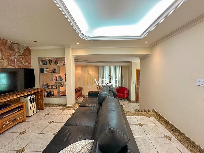 casa com dois pavimentos sendo o 1º Pavimento: sala de televisão e sala de jantar com rebaixamento em gesso e projeto de iluminação direta e indireta;