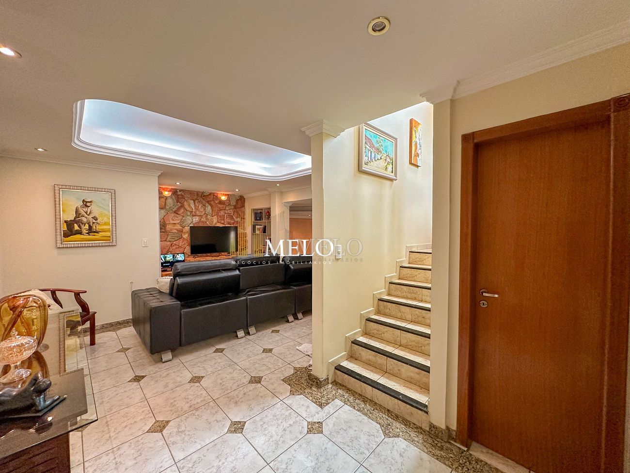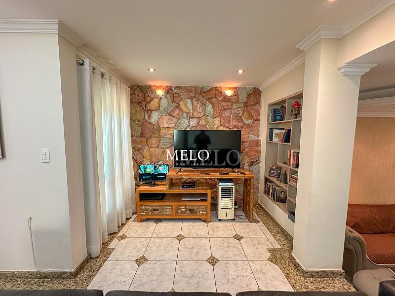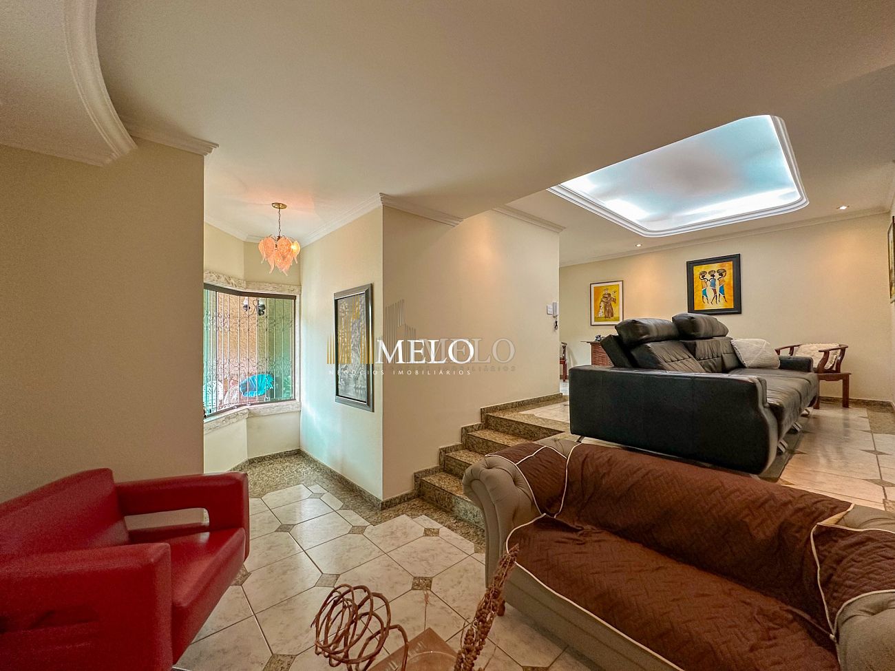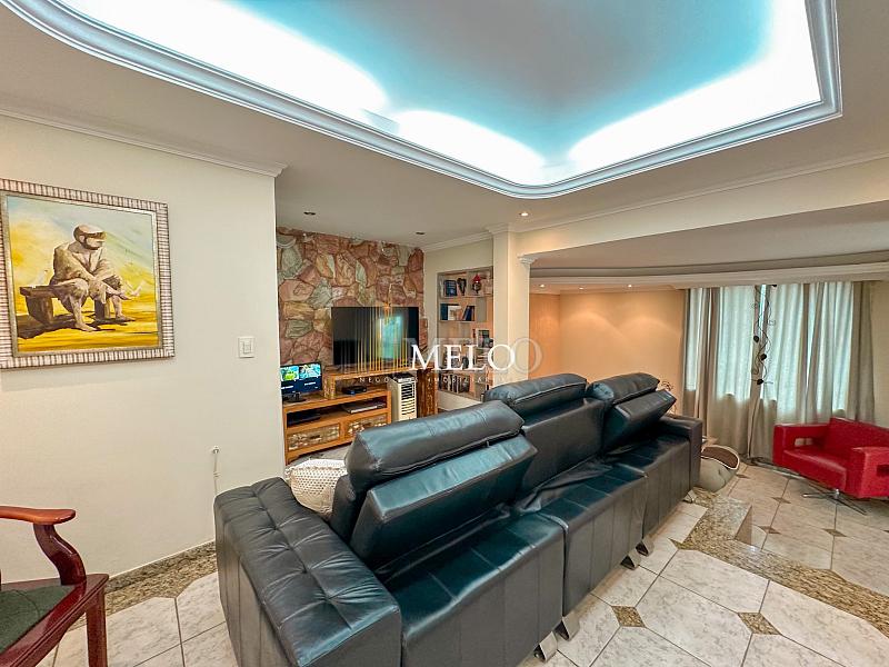 casa com dois pavimentos sendo o 1º Pavimento: sala de televisão e sala de jantar com rebaixamento em gesso e projeto de iluminação direta e indireta;