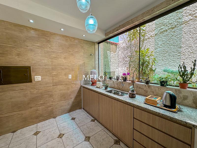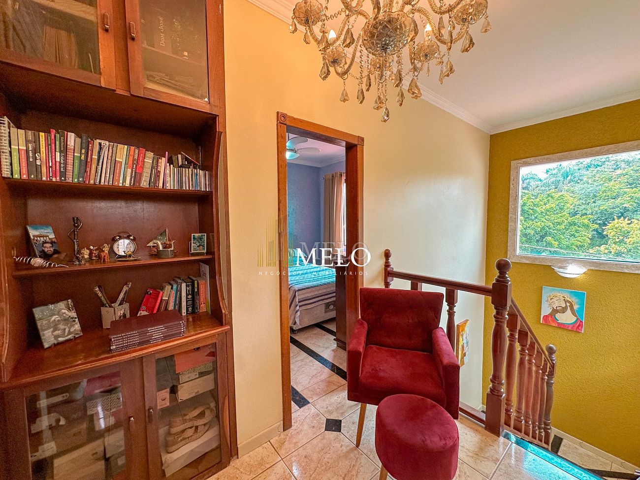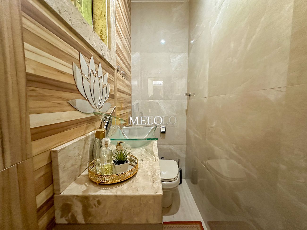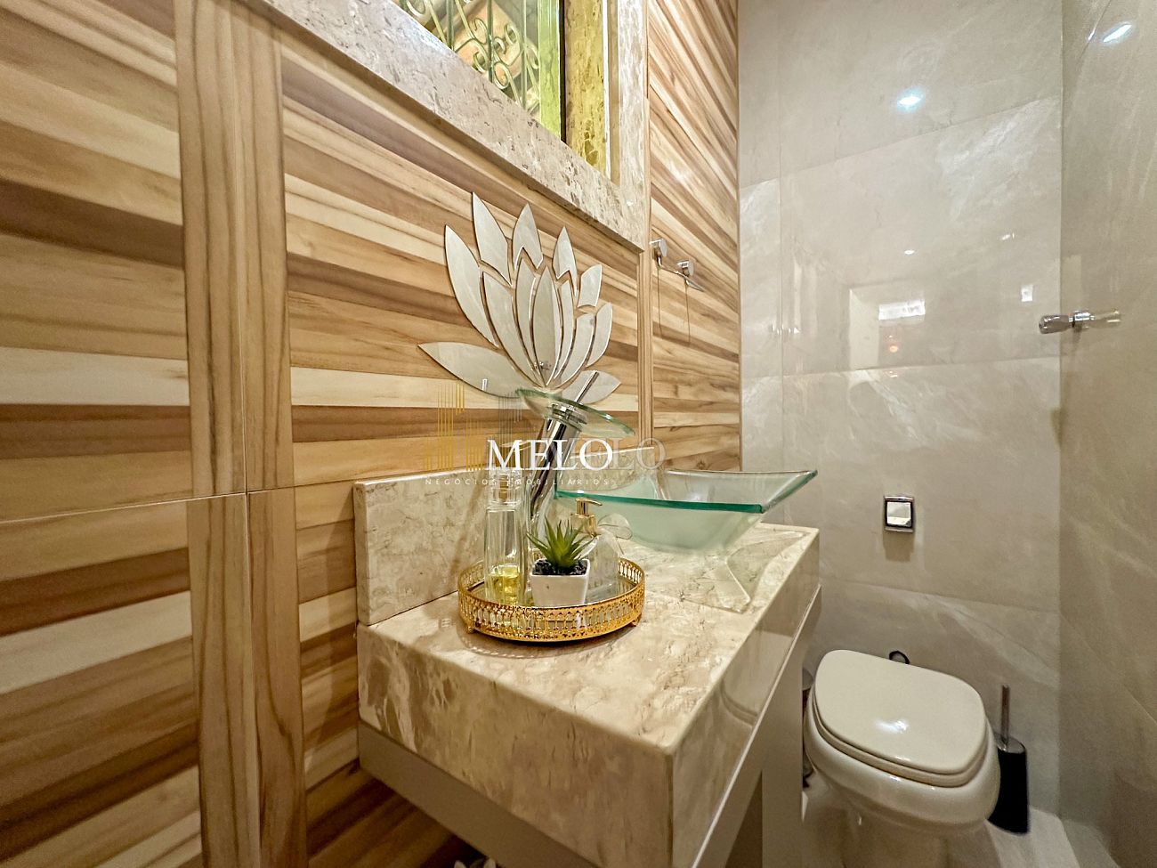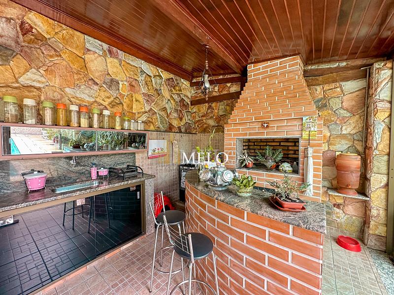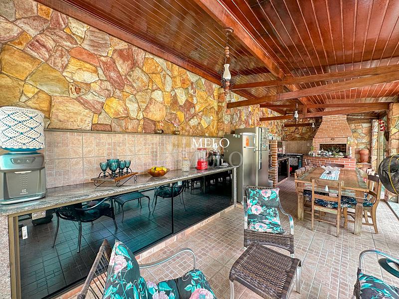 2º Pavimento: 3 quartos com armários planejados, sendo 1 Suíte; Banheiros com bancada em mármore bege Bahia, armário planejado e nicho na área de banho; Espaço Gourmet com bancada em mármore, armários com acabamento em vidro, churrasqueira, sauna e piscina; Lavanderia com tanque de bojo triplo, bancadas em granito e armários com acabamento em vidro , Varanda na garagem, com vista para a mata do Clube