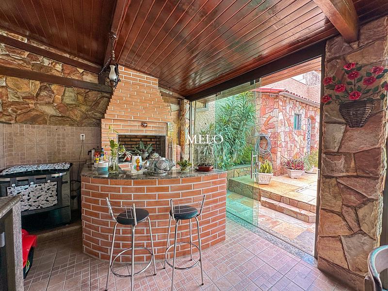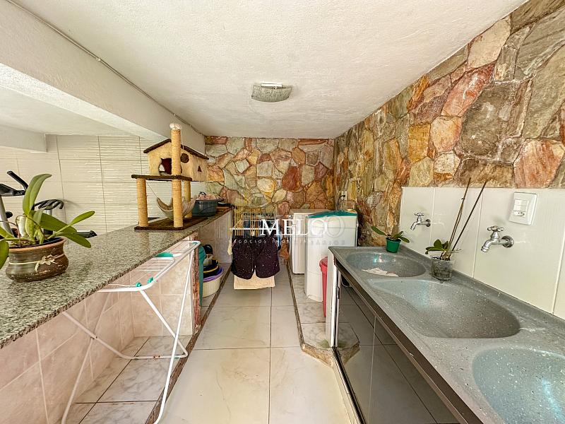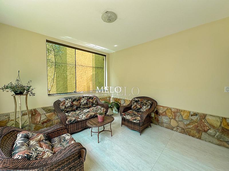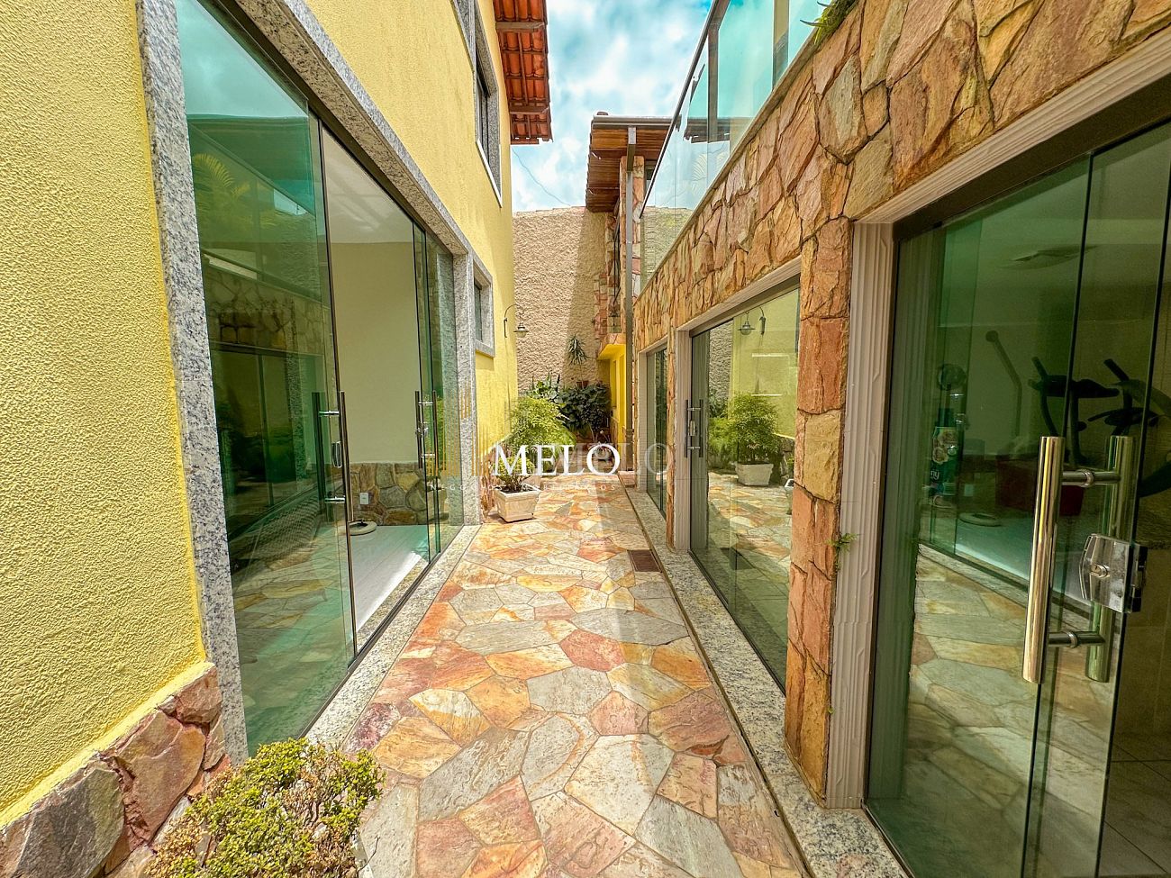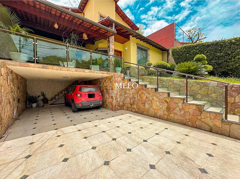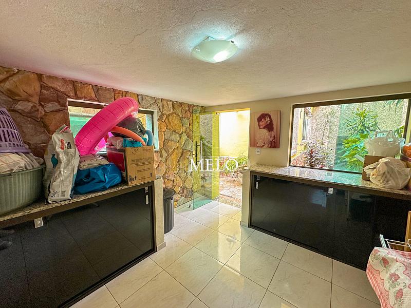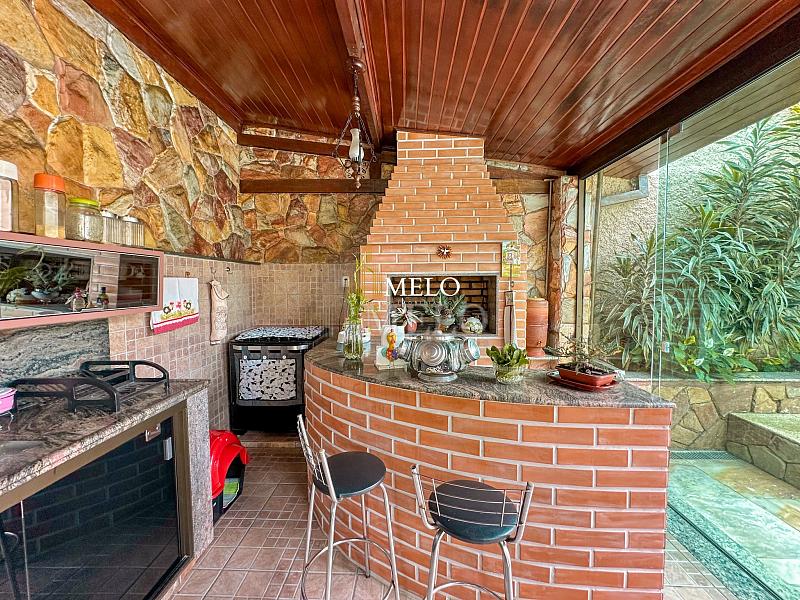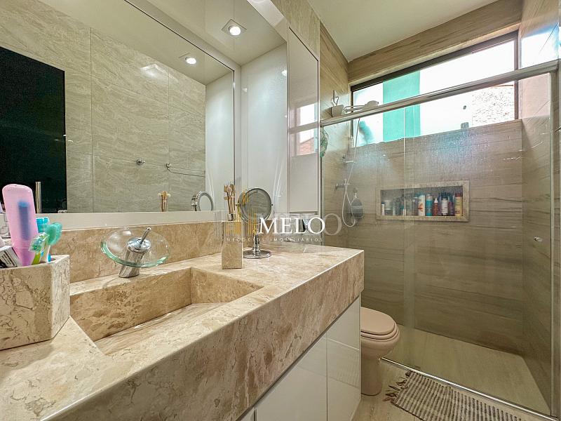 2º Pavimento: 3 quartos com armários planejados, sendo 1 Suíte; Banheiros com bancada em mármore bege Bahia, armário planejado e nicho na área de banho; Espaço Gourmet com bancada em mármore, armários com acabamento em vidro, churrasqueira, sauna e piscina; Lavanderia com tanque de bojo triplo, bancadas em granito e armários com acabamento em vidro , Varanda na garagem, com vista para a mata do Clube