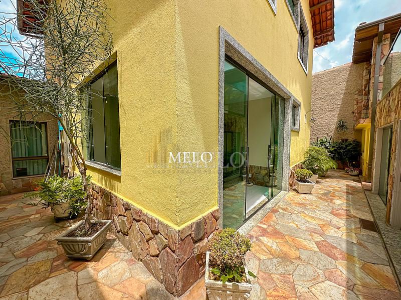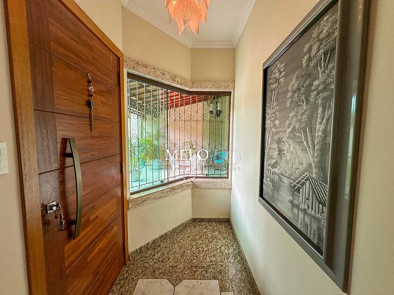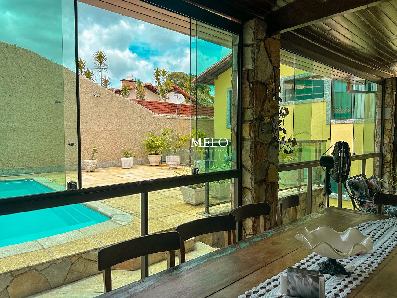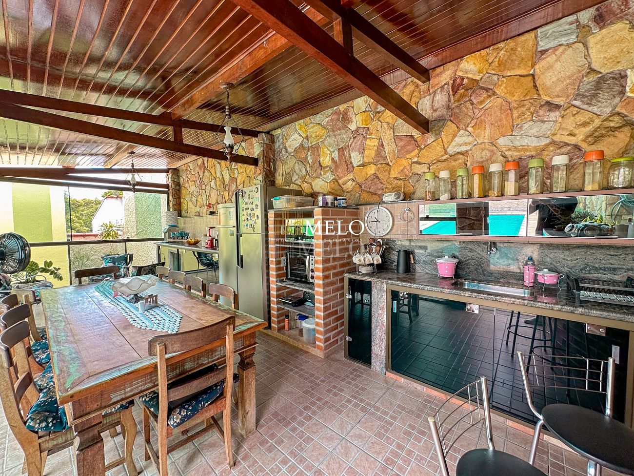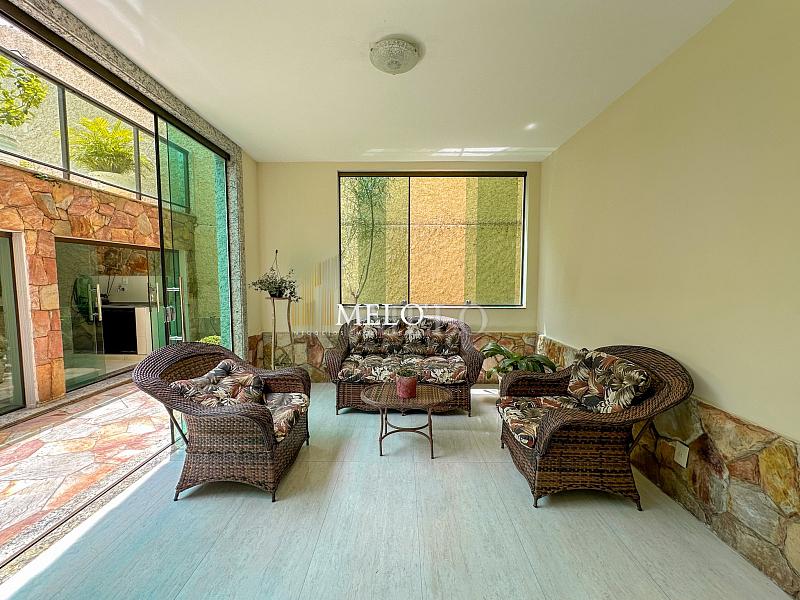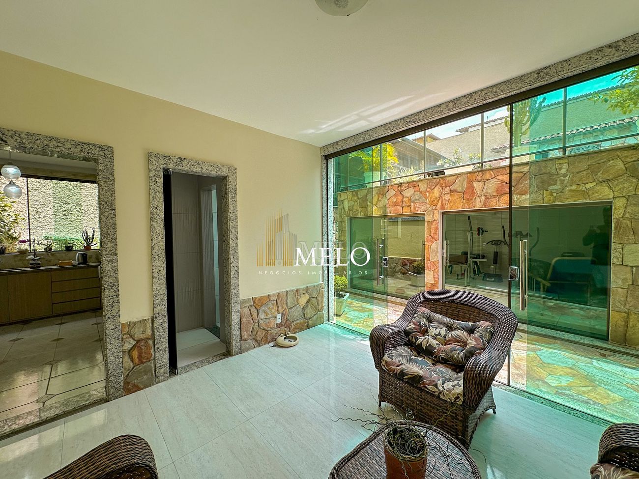2º Pavimento: 3 quartos com armários planejados, sendo 1 Suíte; Banheiros com bancada em mármore bege Bahia, armário planejado e nicho na área de banho; Espaço Gourmet com bancada em mármore, armários com acabamento em vidro, churrasqueira, sauna e piscina; Lavanderia com tanque de bojo triplo, bancadas em granito e armários com acabamento em vidro , Varanda na garagem, com vista para a mata do Clube