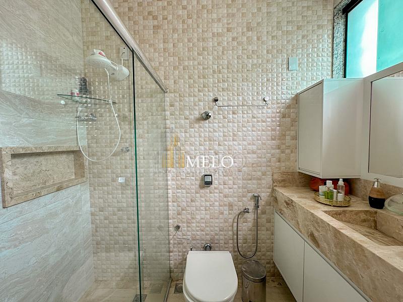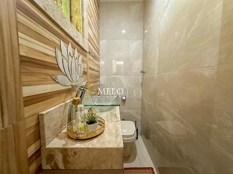 Sala de estar; Lavabo com bancada em mármore bege bahia; Banheiro Social; Cozinha espaçosa, arejada, com bancada em granito e armário planejado;