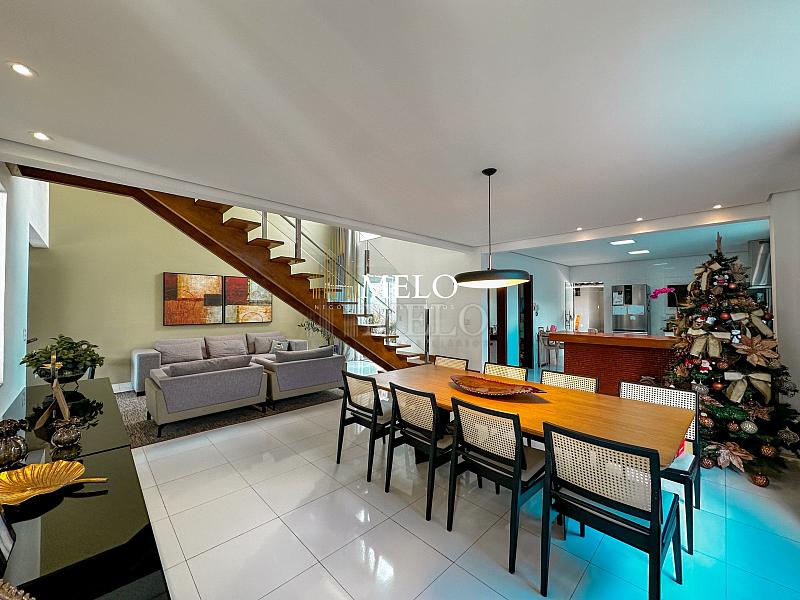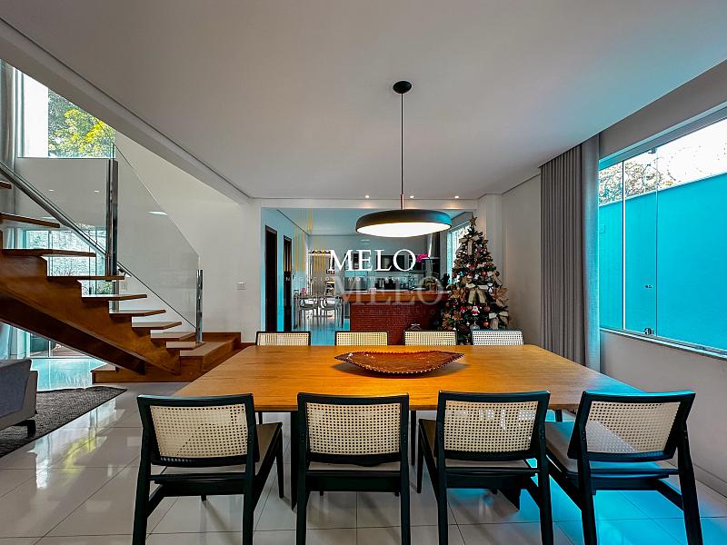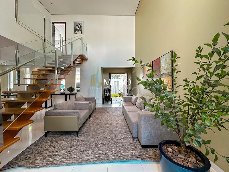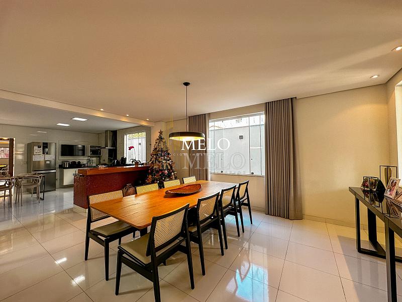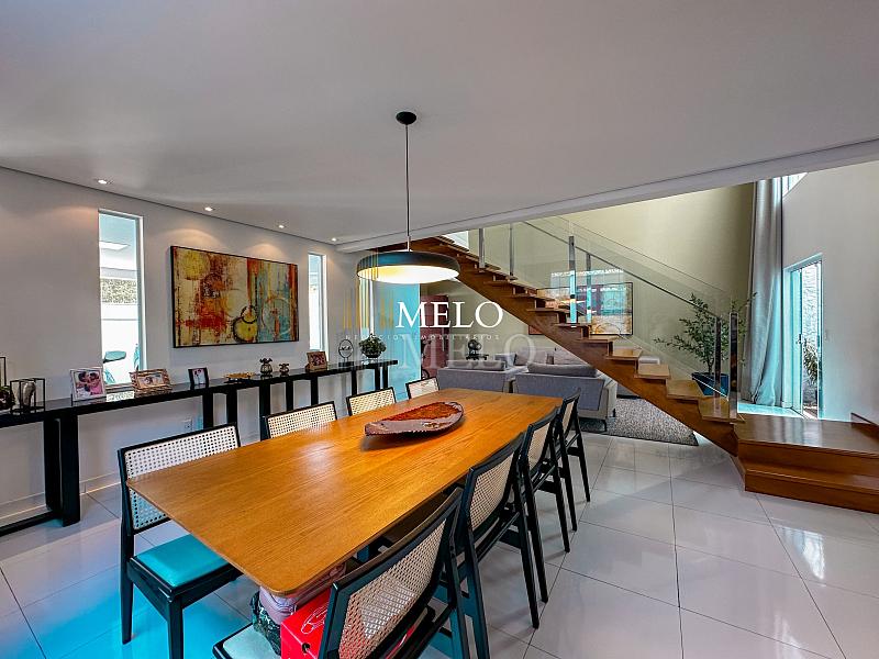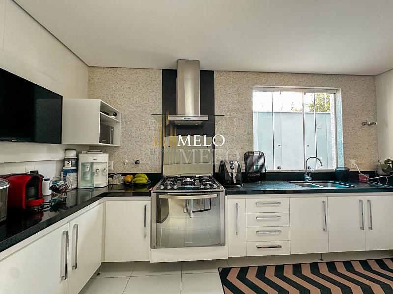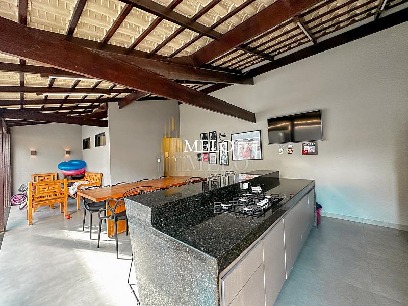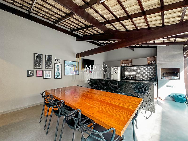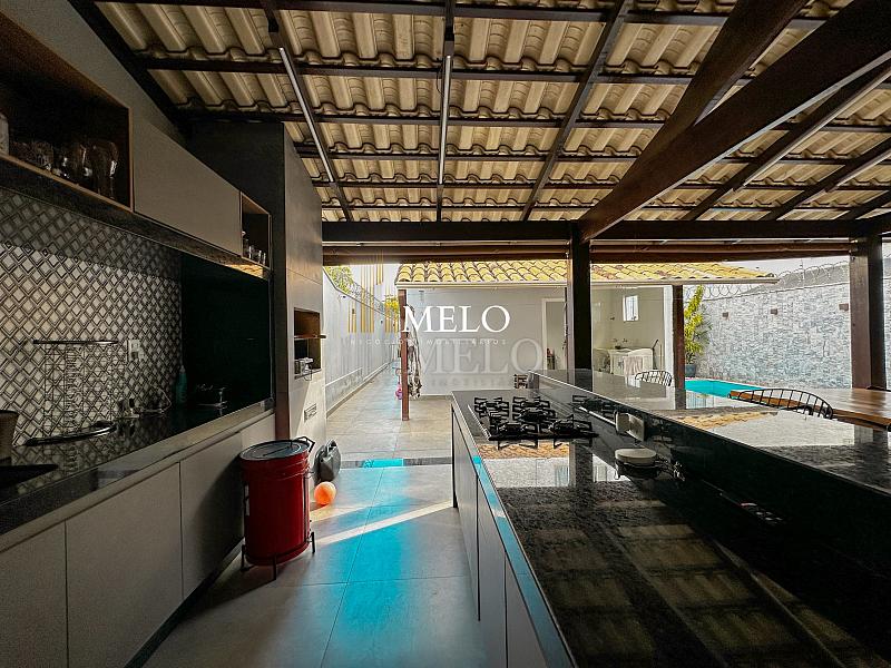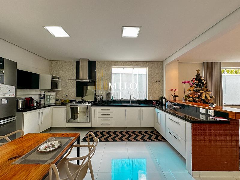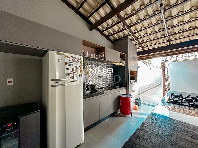 Primeiro pavimento: Sala ampla com pé direito duplo; Copa; Cozinha Americana , armários planejados, bancada; Despensa; Lavabo , Armários planejados; Área gourmet montada , Churrasqueira , Ducha , Piscina;