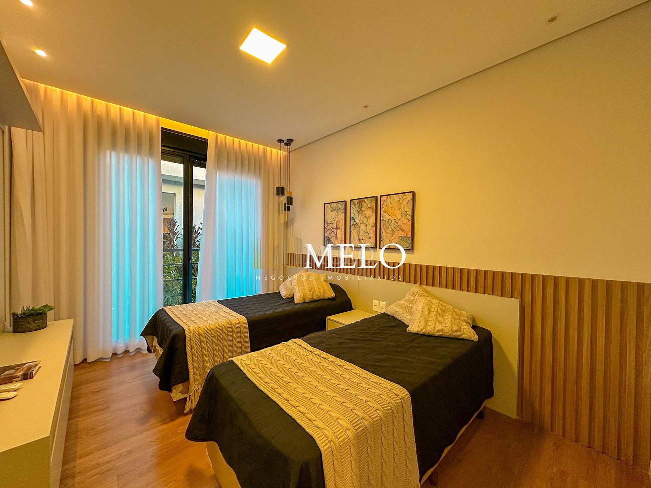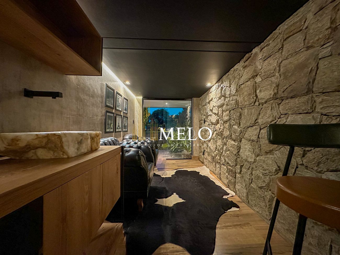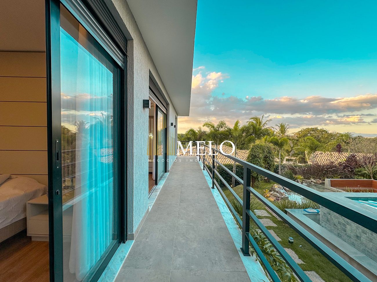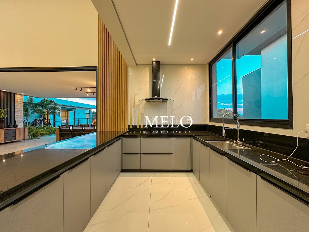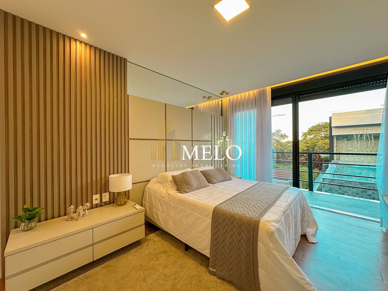 Composta por uma sala de estar espaçosa com pé direito duplo, integrada a sala de jantar, sala de TV toda mobiliada, 4 quartos, sendo 4 suítes com closet, DCE completo, cozinha gourmet com armários personalizados com integração a área gourmet. Externo composto por área gourmet com piscina, sauna, lavabo, lago de carpas com balanço, fogo de chão e quarto de adega.