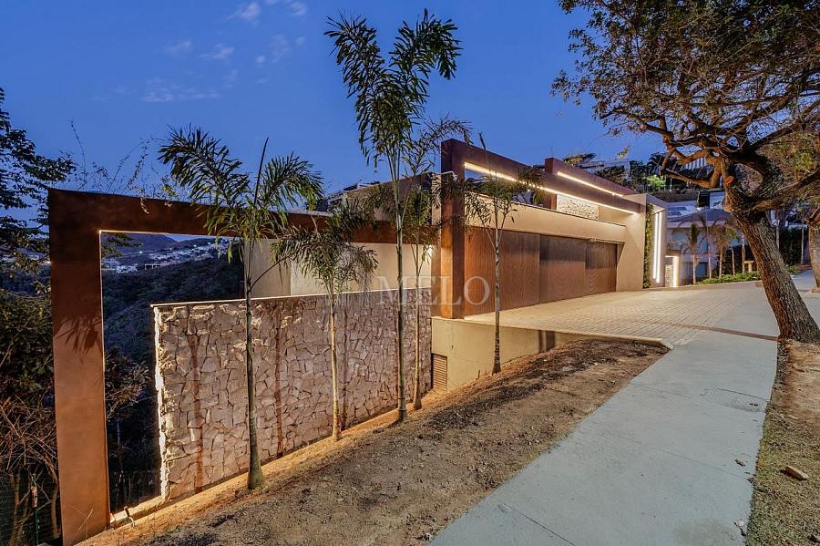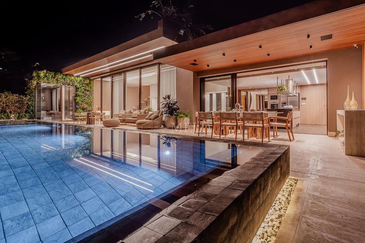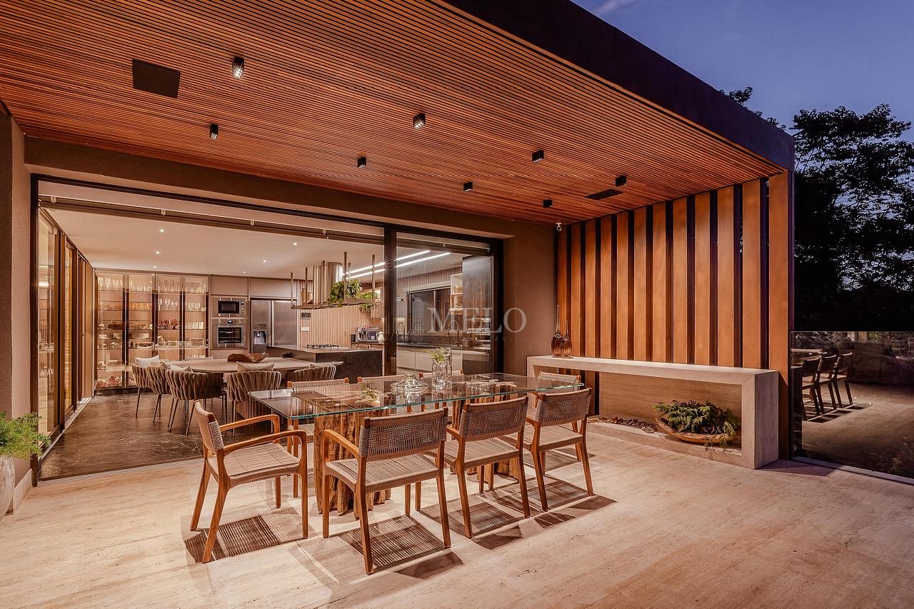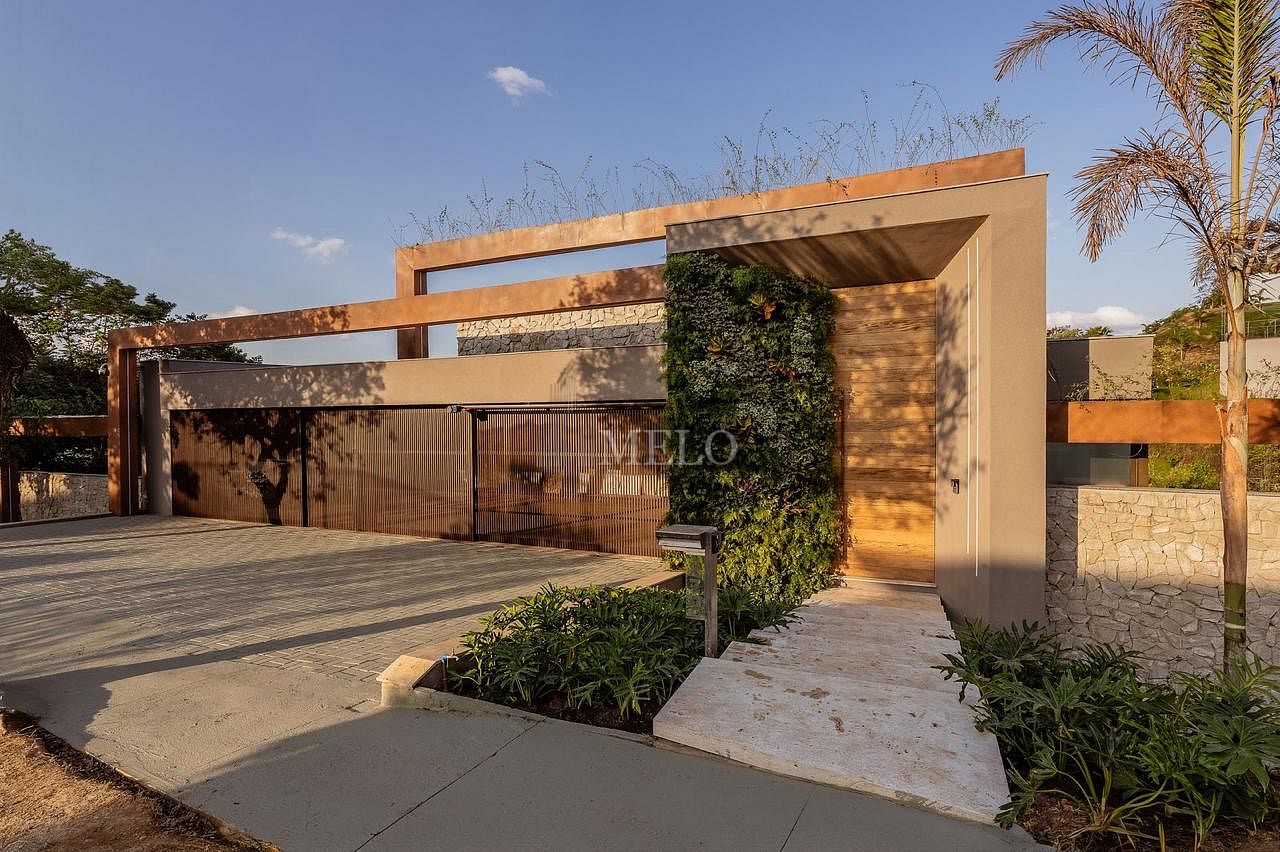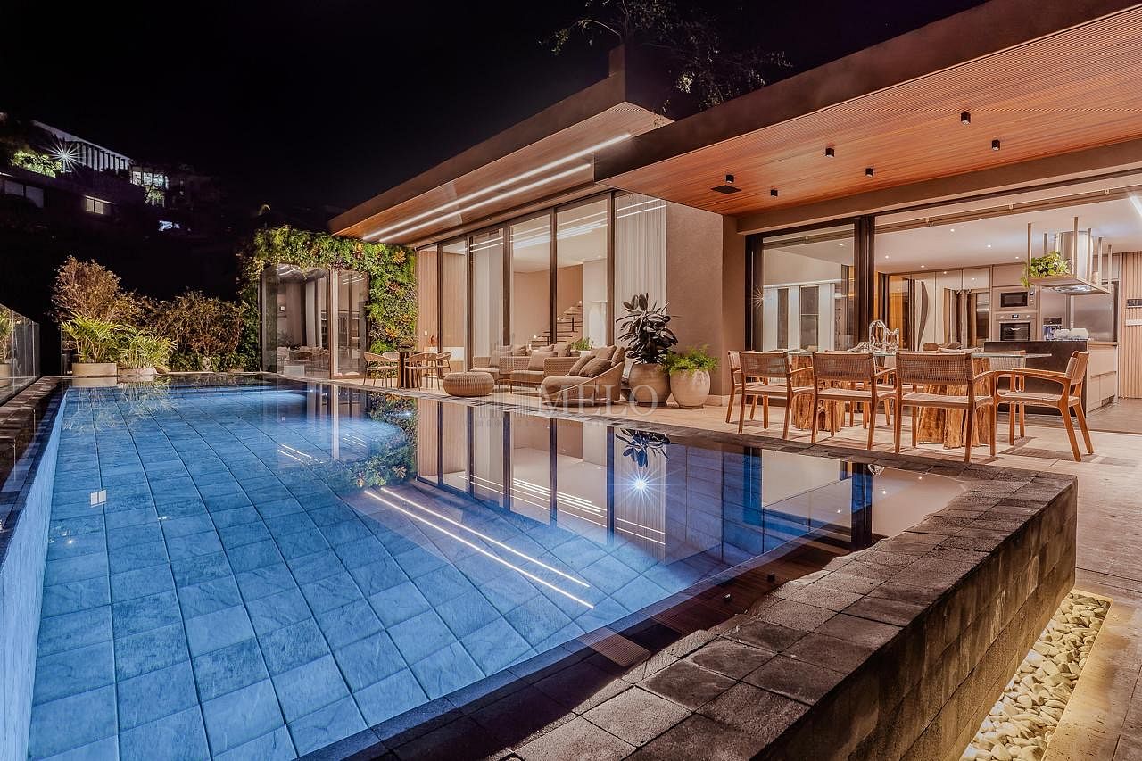 Com uma arquitetura imponente e linhas modernas, essa casa entrega uma experiência única desde a chegada — fachada marcante, iluminação cênica e integração perfeita com a natureza ao redor.