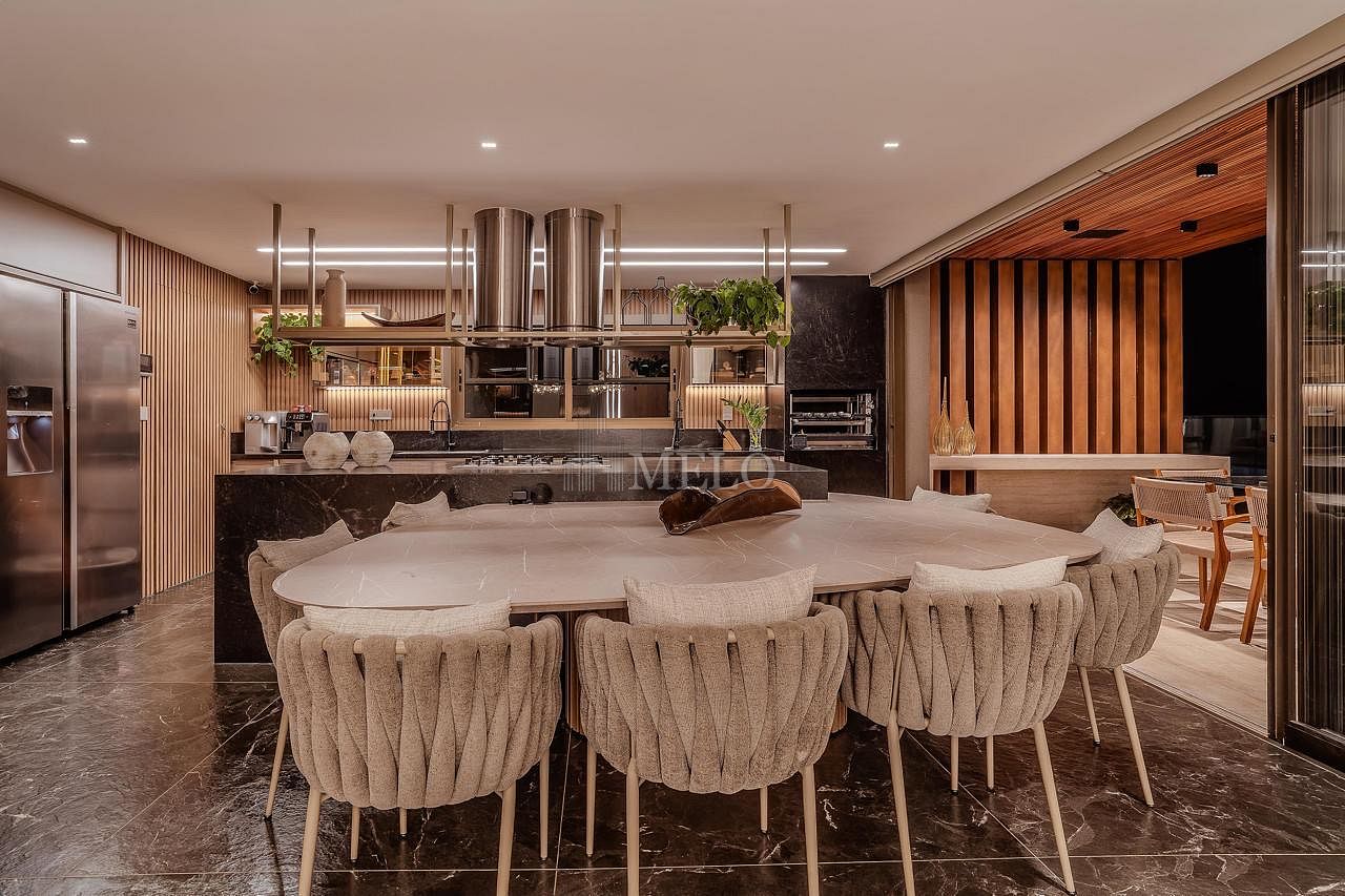 • Cozinha e espaço gourmet totalmente conectados, ideais para receber com elegância