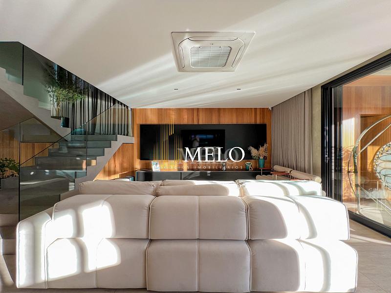 Fachada moderna, 4 vagas de garagem. Sala de estar, 4 suítes sendo uma com closet.