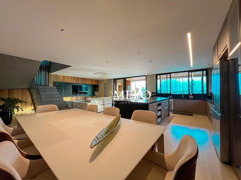 Sala para 3 ambientes, toda integrada com área gourmet, cozinha, área de serviço, todo o espaço já com armários planejados, toda a marcenaria pronta, cozinha já pronta, com itens embutidos, fogão, bancada diferenciada grande para receber os amigos e home cinema.