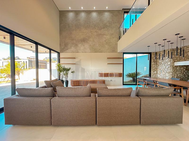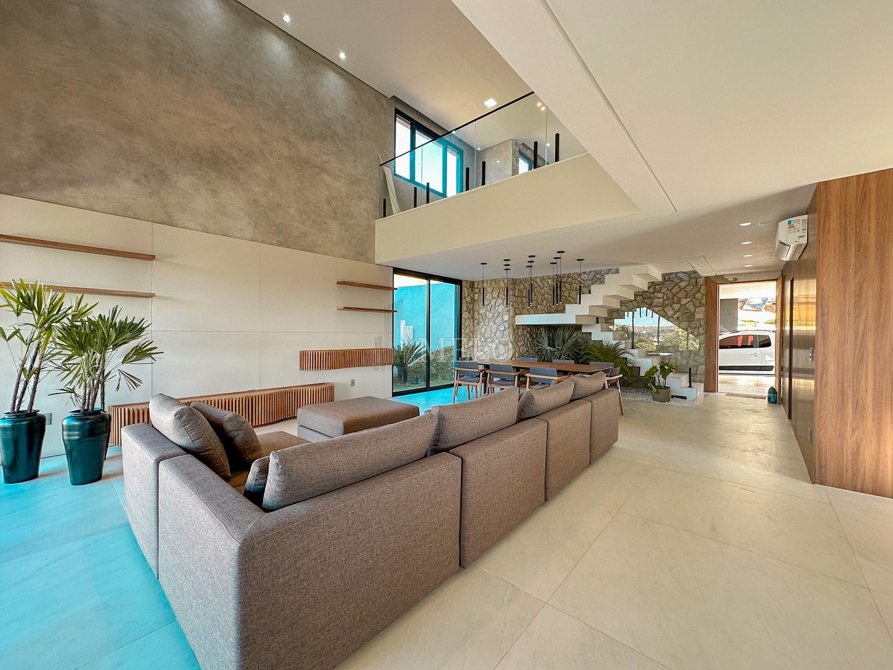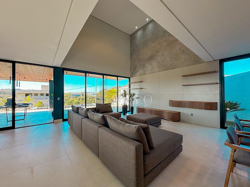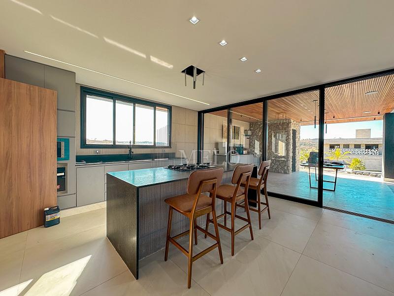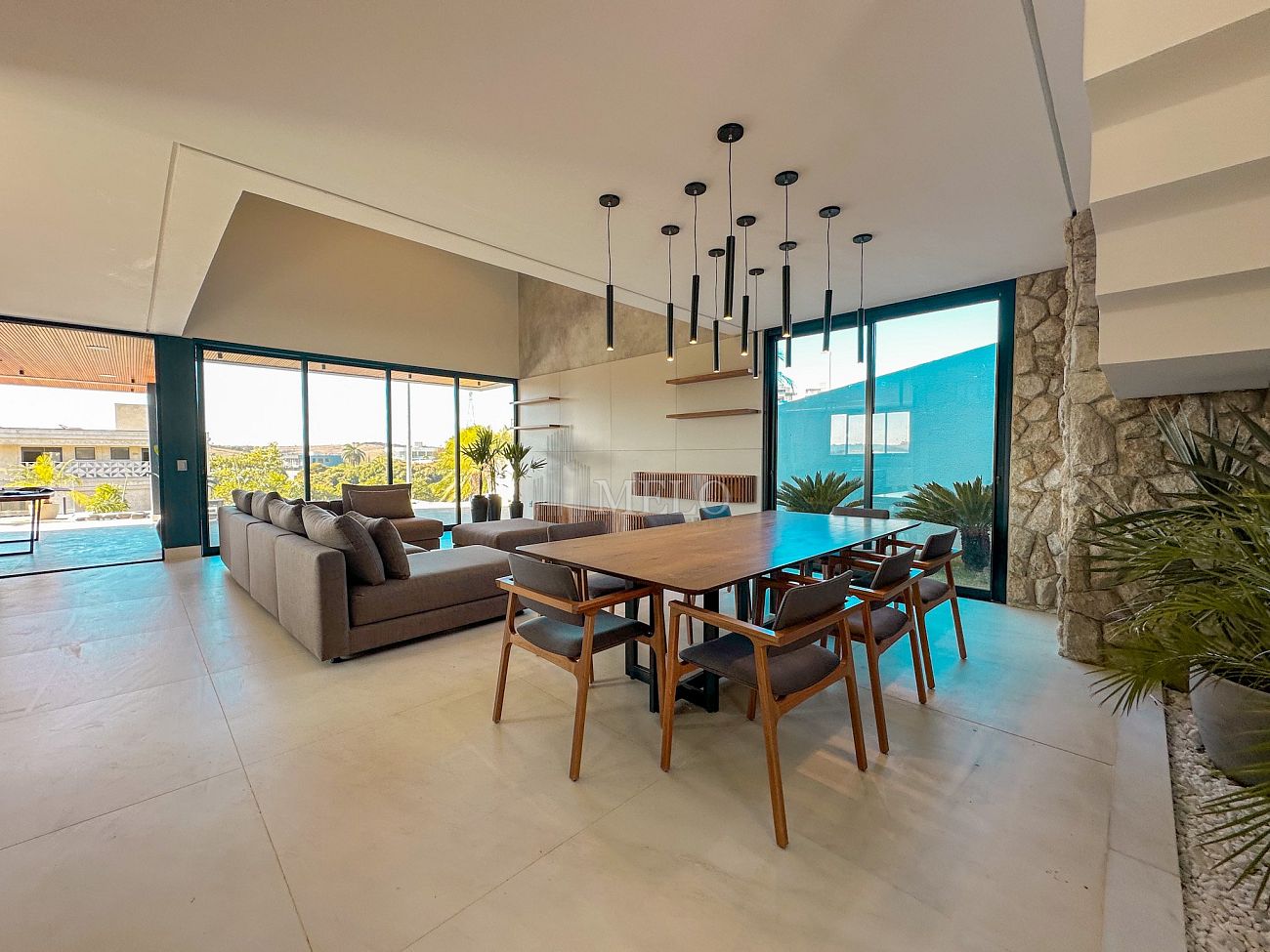 • Primeiro pavimento: piscina aquecida; sala ampla para 3 ambientes; cozinha integrada à área gourmet com bancadas e ilhas em pedra; churrasqueira ; amplo deck em madeira; lavabo; ducha; despensa; área de serviço, banheiro e quarto de serviço para colaboradores; Aquecimento solar , paisagismo ,irrigação automatizada , esquadrias em alumínio preto ,preparação para ar-condicionado em todos os quartos, área gourmet e sala de TV , preparação para energia solar fotovoltaica , revestimento de piso em porcelanato Portobello ;