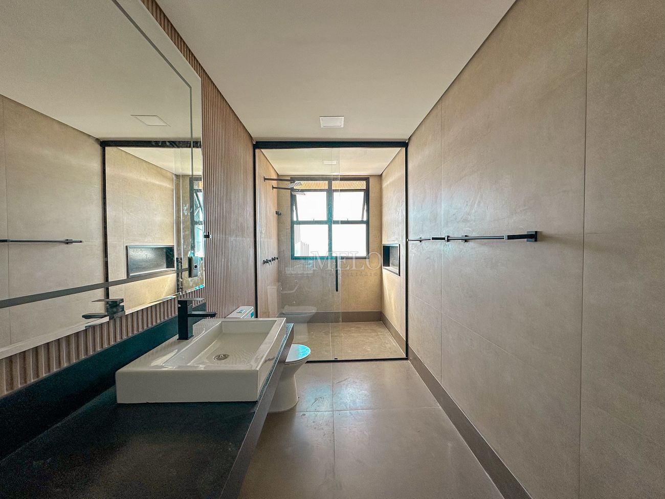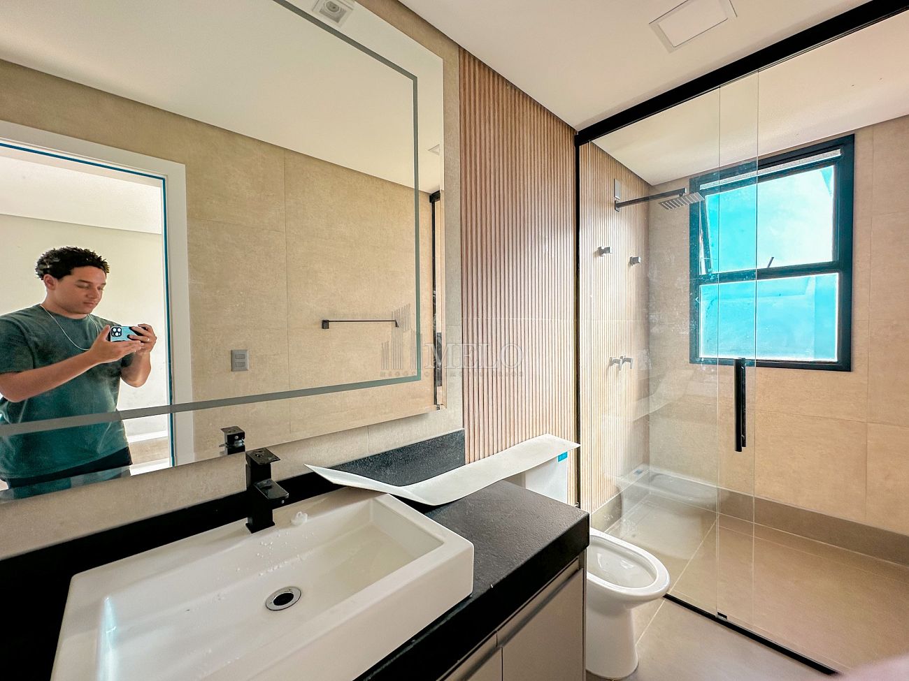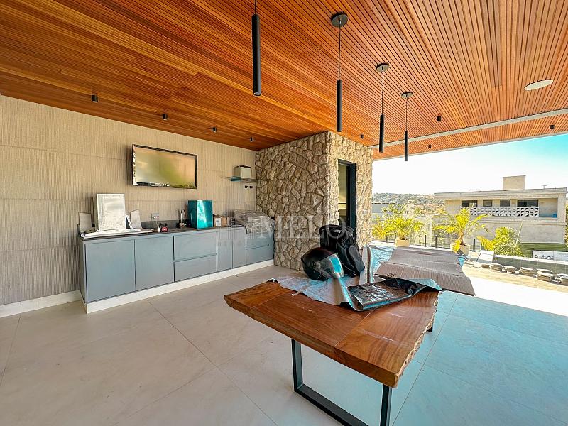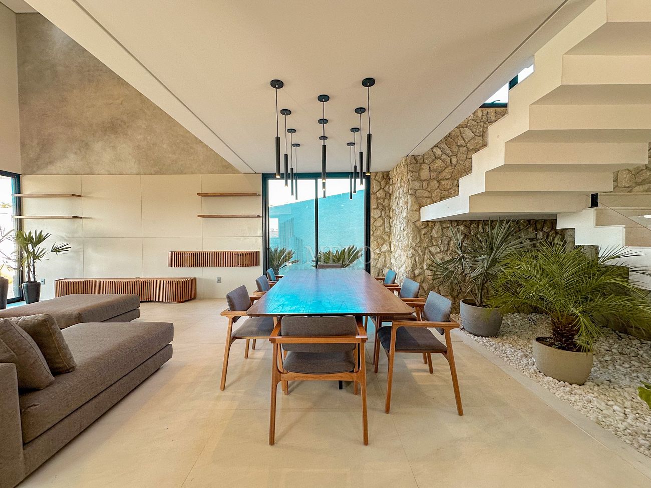 • Primeiro pavimento: piscina aquecida; sala ampla para 3 ambientes; cozinha integrada à área gourmet com bancadas e ilhas em pedra; churrasqueira ; amplo deck em madeira; lavabo; ducha; despensa; área de serviço, banheiro e quarto de serviço para colaboradores; Aquecimento solar , paisagismo ,irrigação automatizada , esquadrias em alumínio preto ,preparação para ar-condicionado em todos os quartos, área gourmet e sala de TV , preparação para energia solar fotovoltaica , revestimento de piso em porcelanato Portobello ;