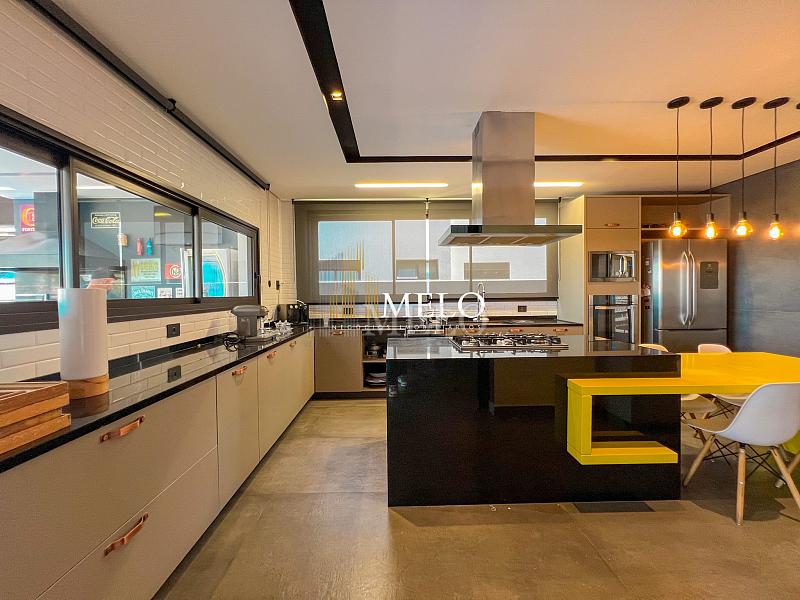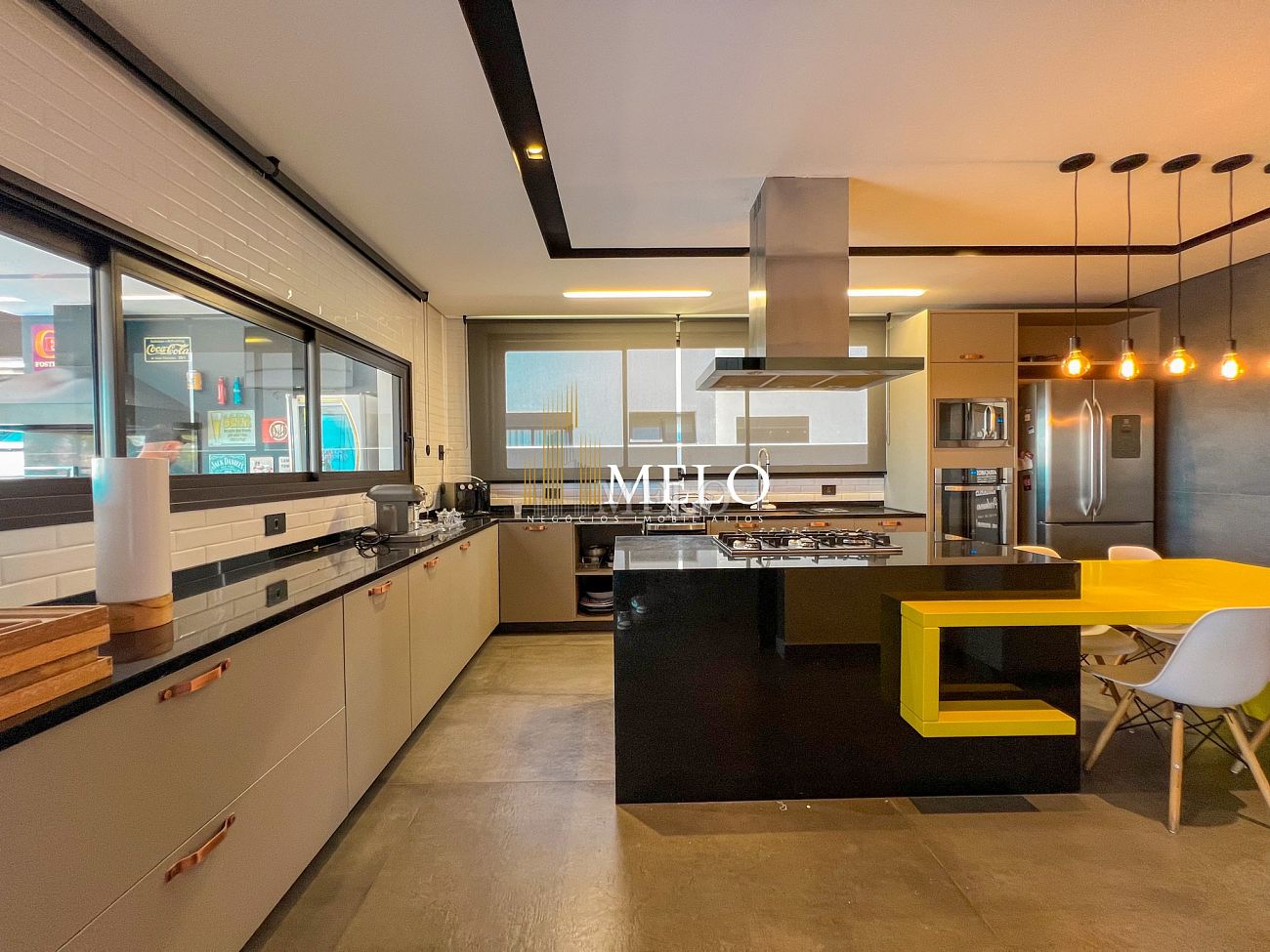 Sala de Tv, cozinha com bancada em ilha e toda planejada, área de serviço.
