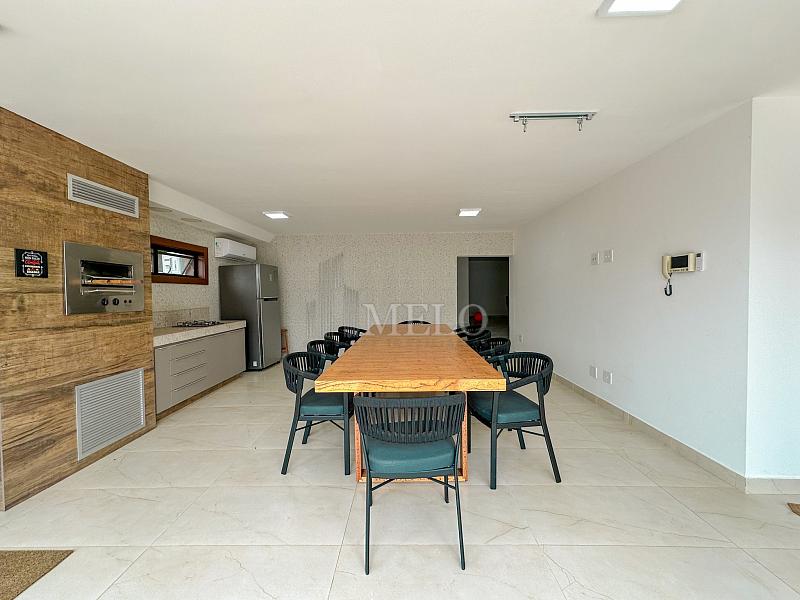 Área gourmet: piscina com sauna integrada, lavabo e churrasqueira elétrica.