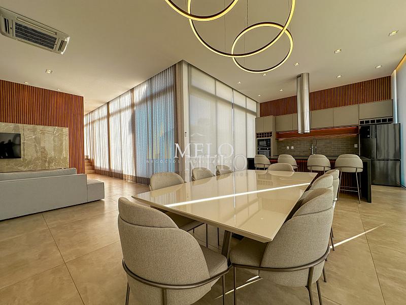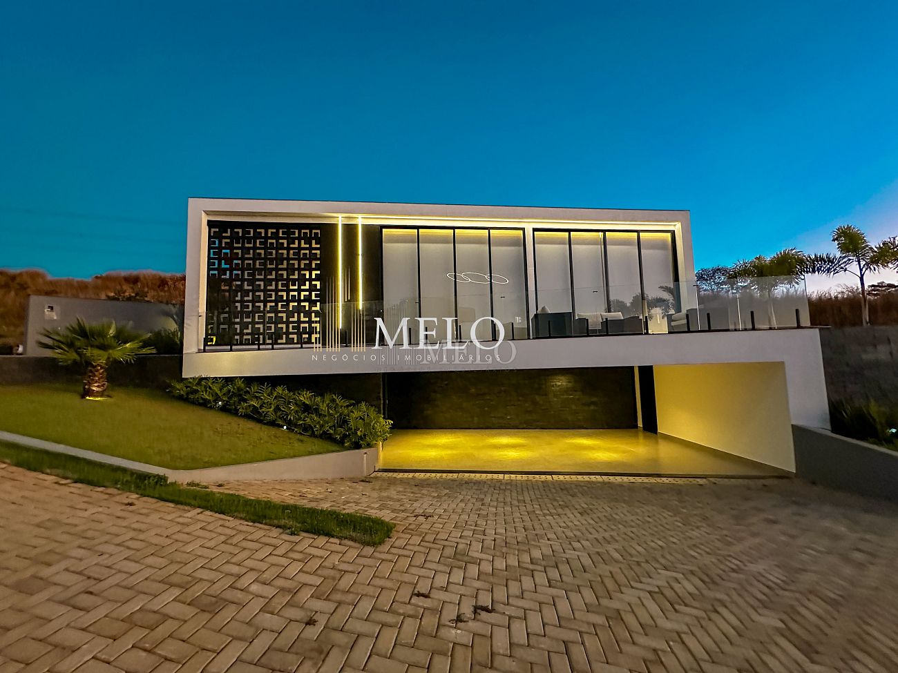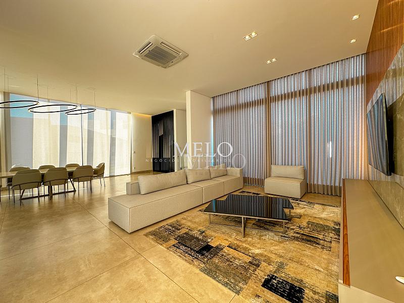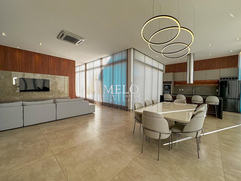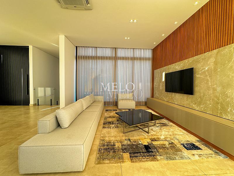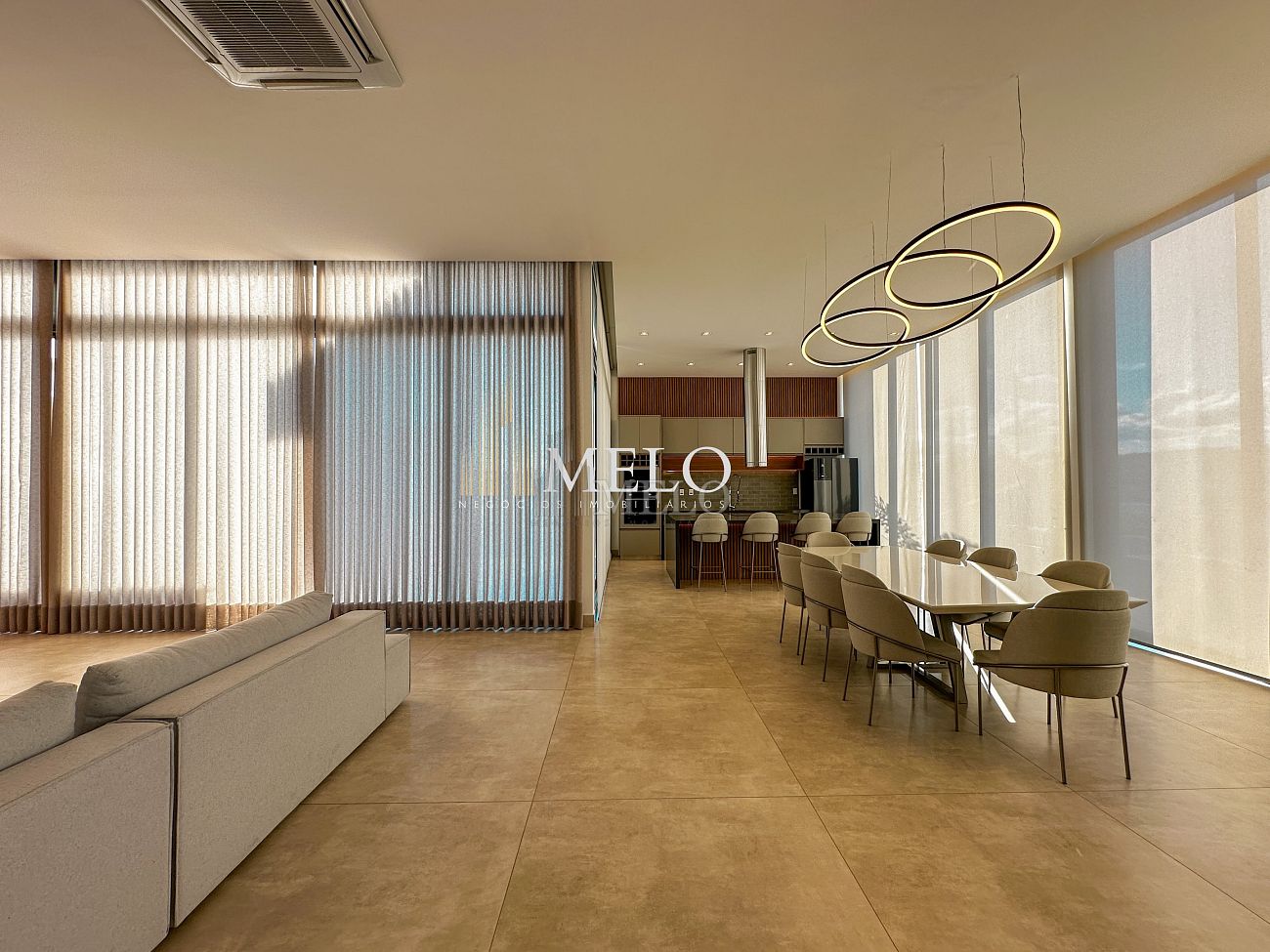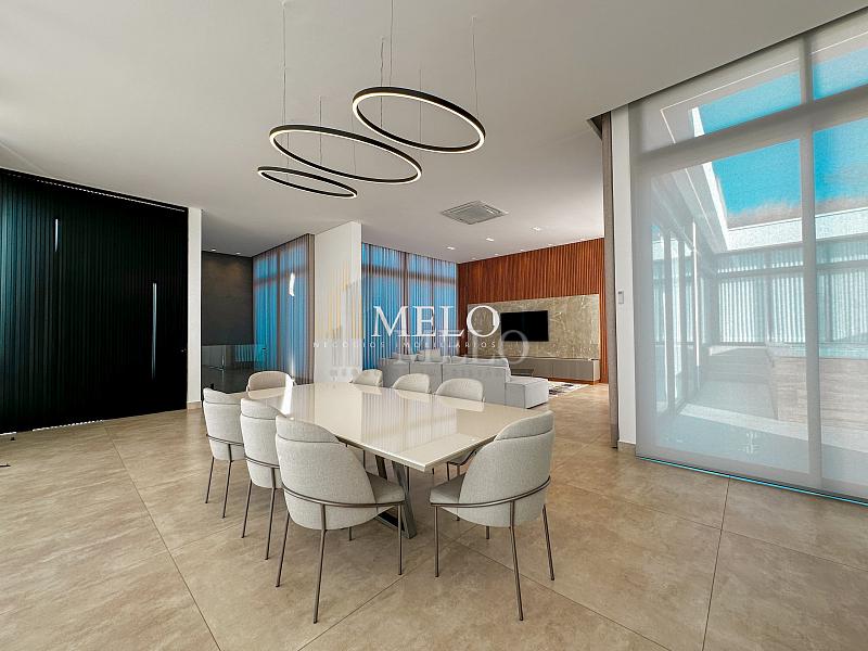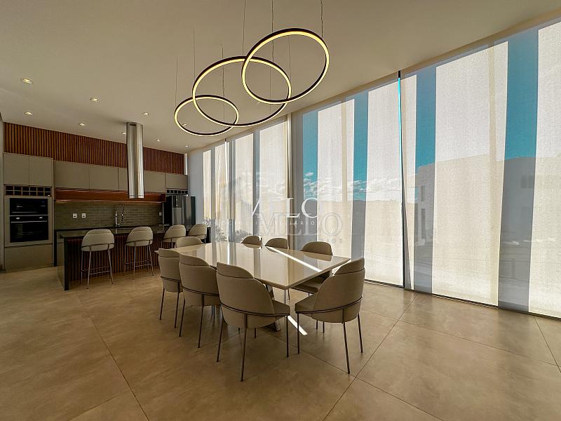 Casa com fachada imponente, porta principal exclusiva da CINEX, sala ampla para 2 ambientes, sendo sala de tv e sala de jantar, lavabo, cozinha americana montada com armários, espaço íntimo com 4 suítes