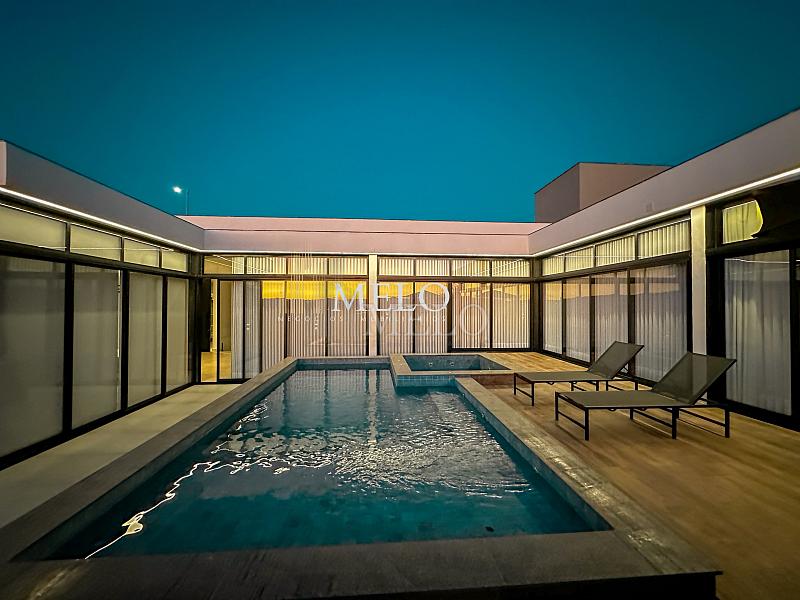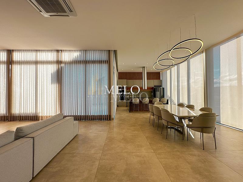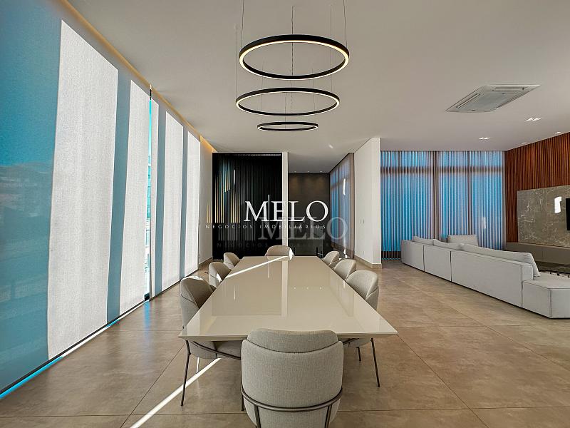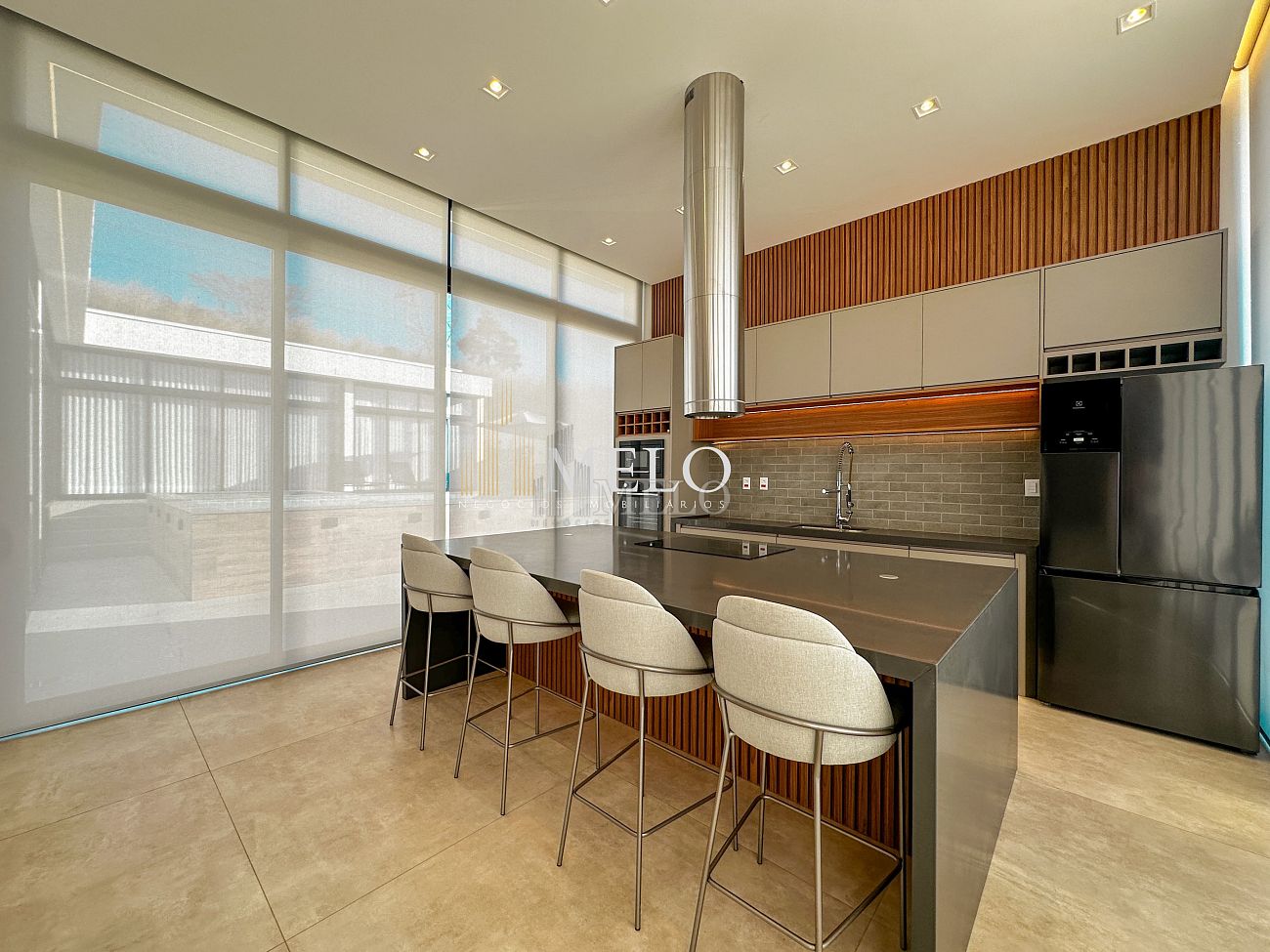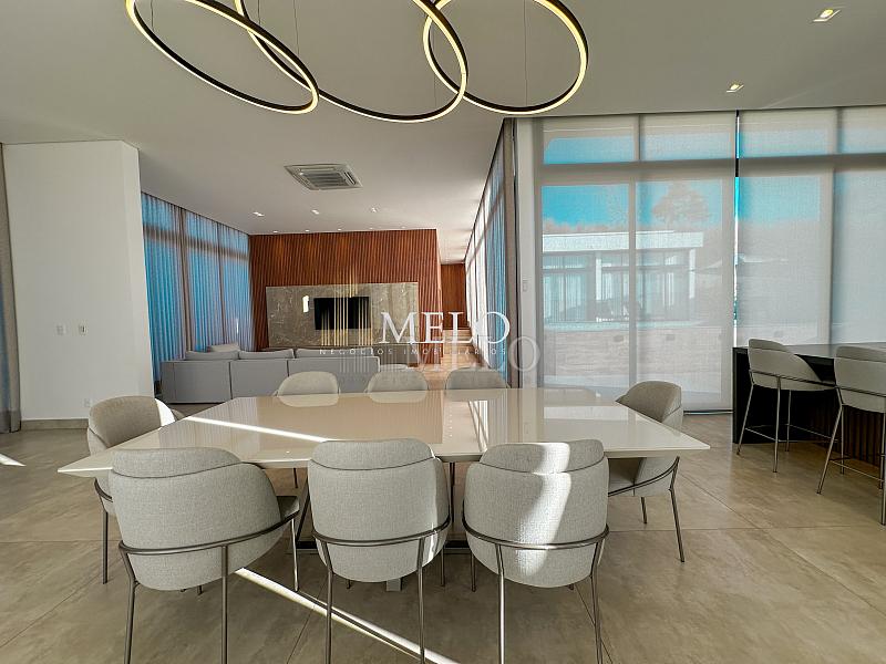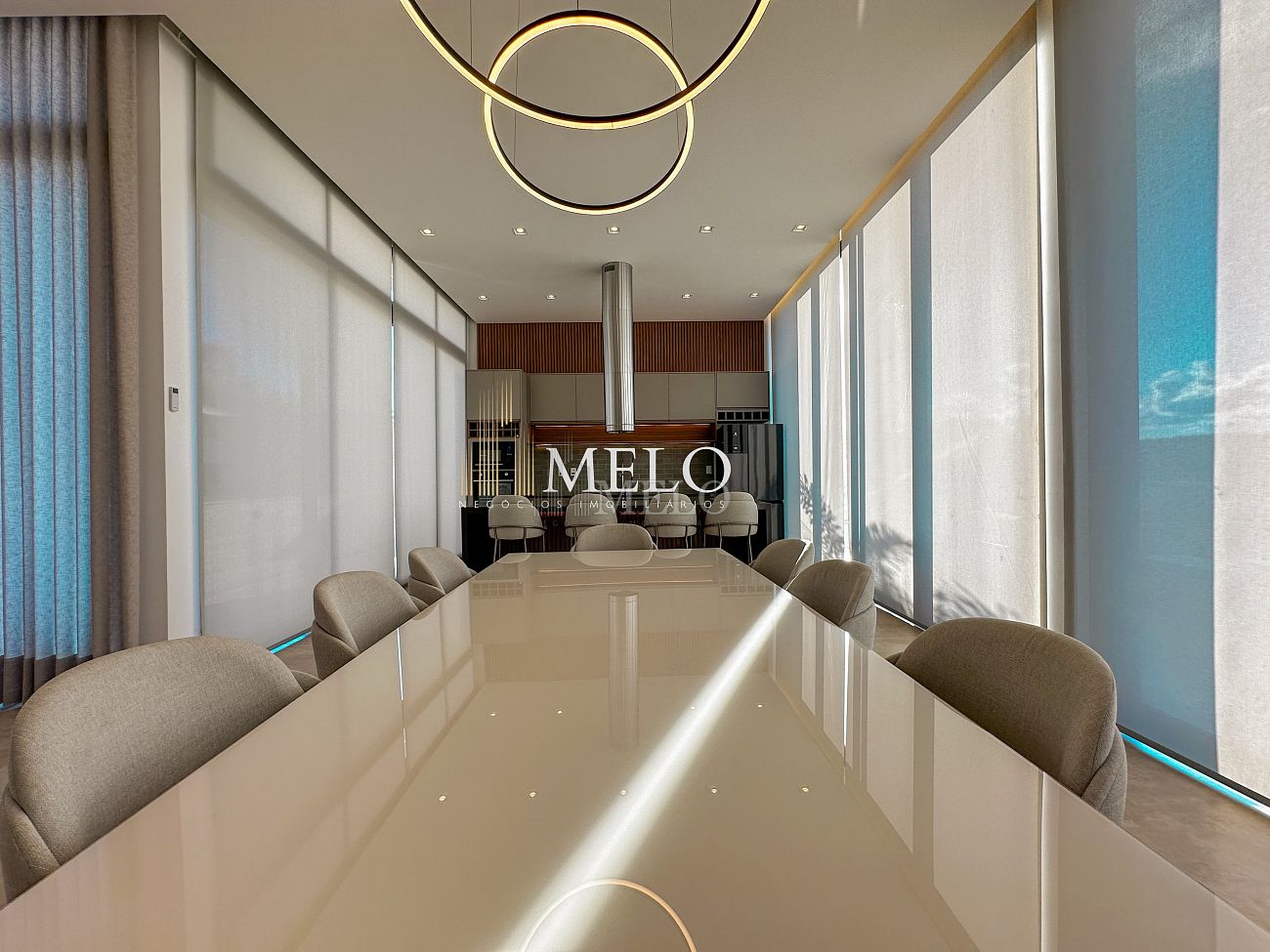 Casa com fachada imponente, porta principal exclusiva da CINEX, sala ampla para 2 ambientes, sendo sala de tv e sala de jantar, lavabo, cozinha americana montada com armários, espaço íntimo com 4 suítes