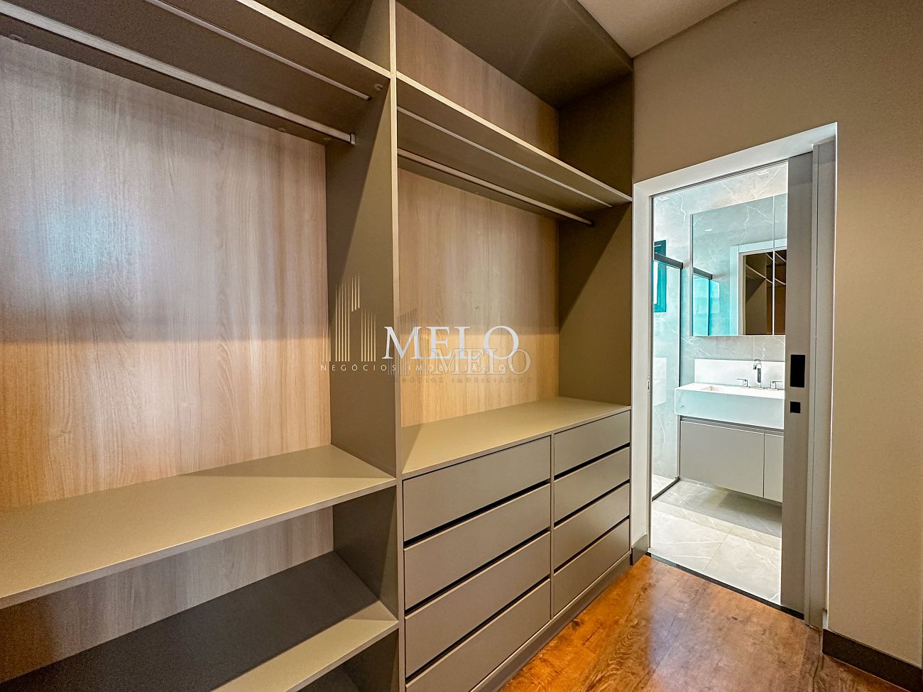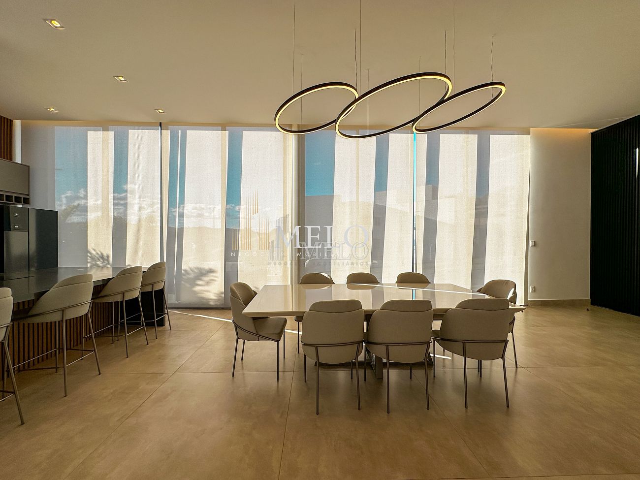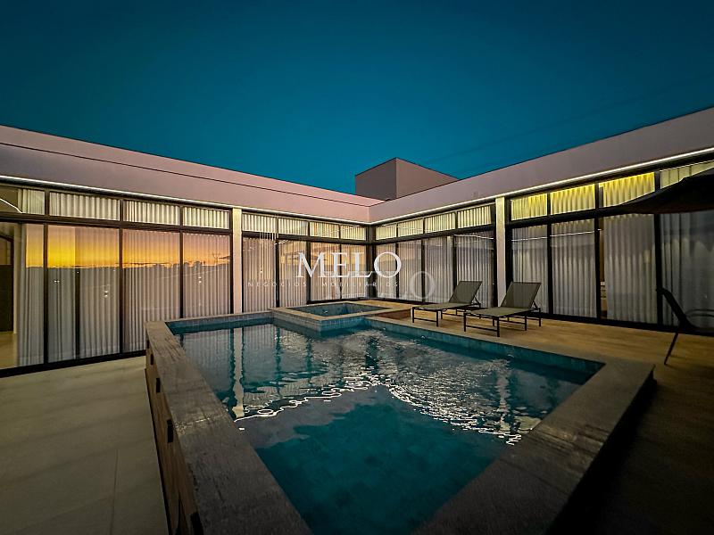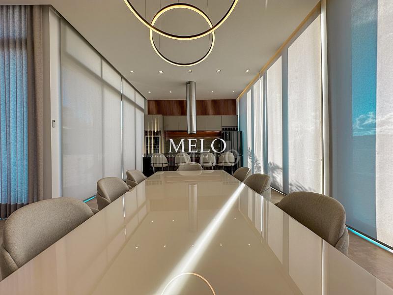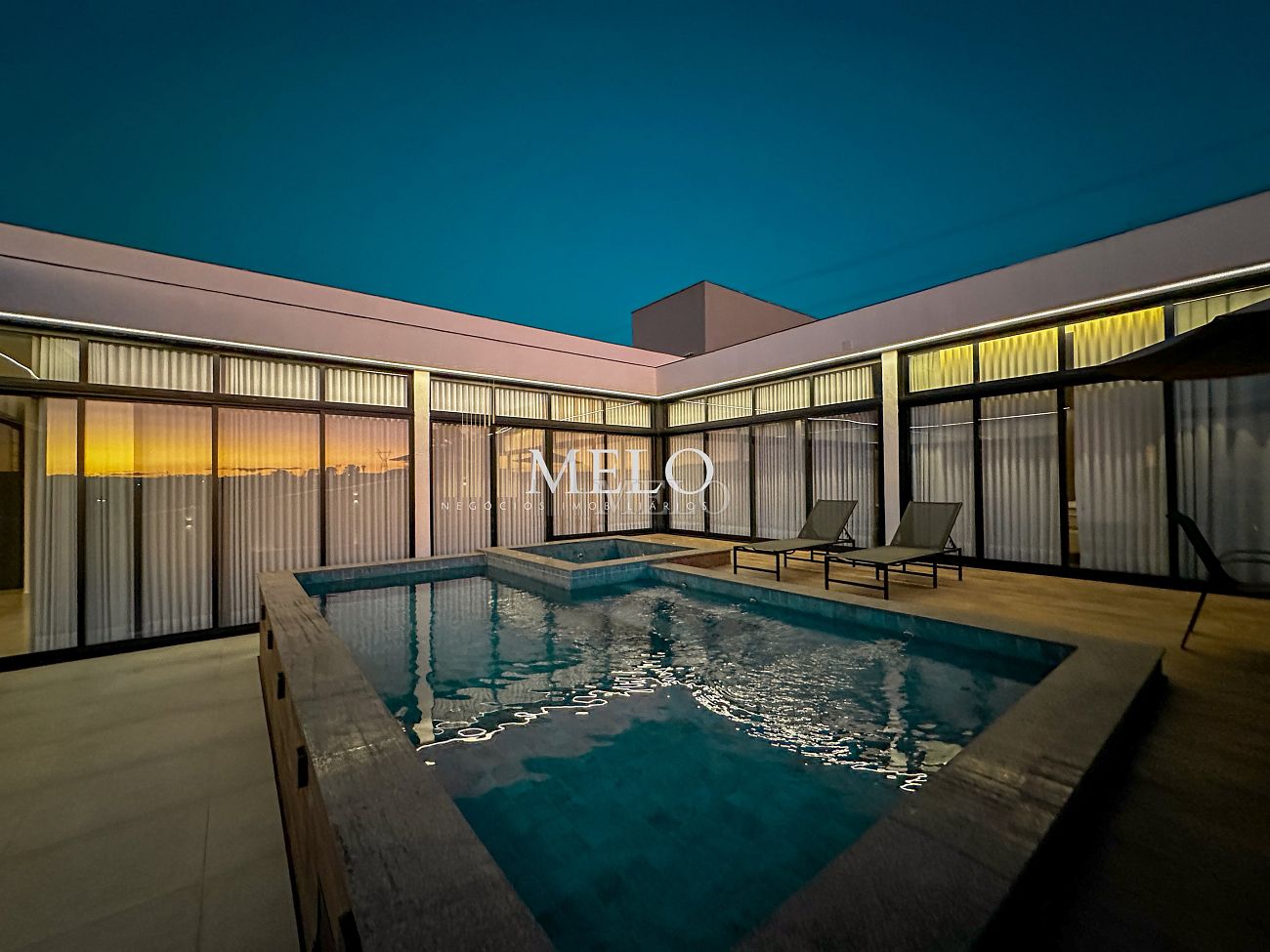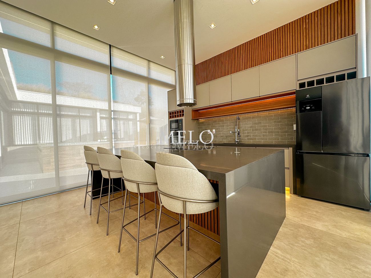 Casa com fachada imponente, porta principal exclusiva da CINEX, sala ampla para 2 ambientes, sendo sala de tv e sala de jantar, lavabo, cozinha americana montada com armários, espaço íntimo com 4 suítes