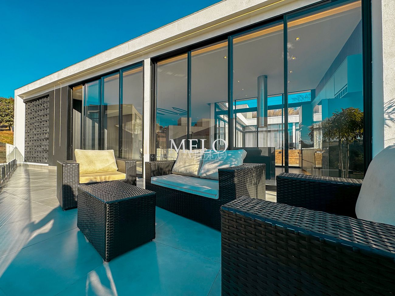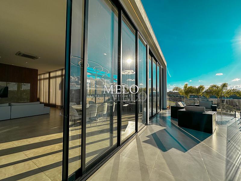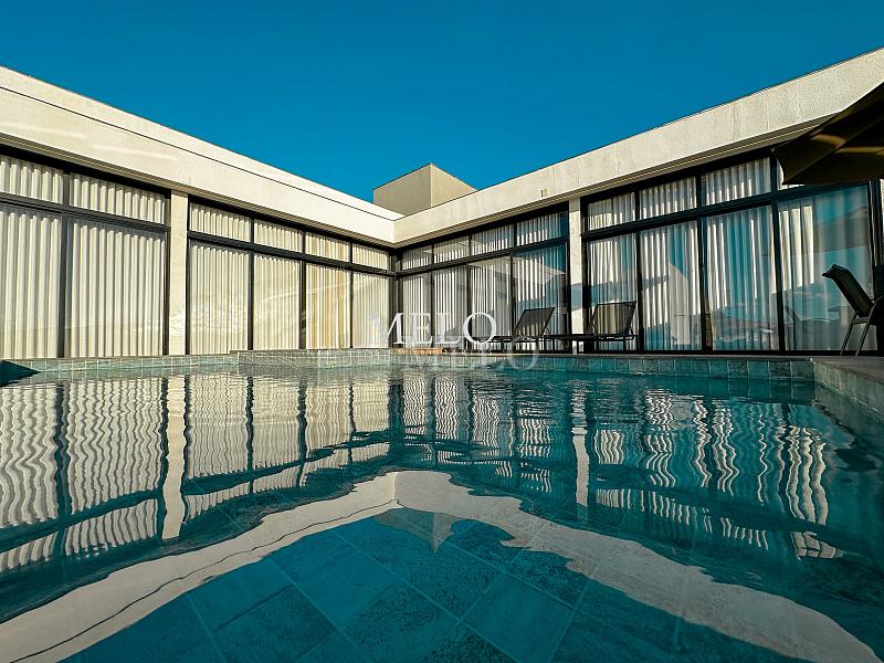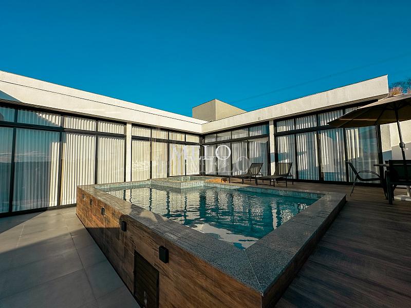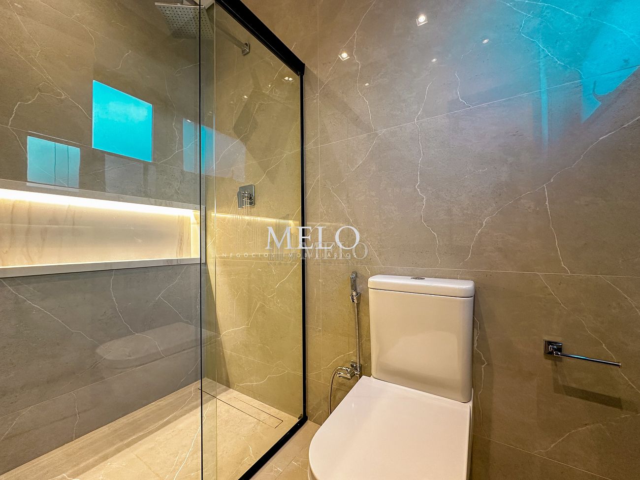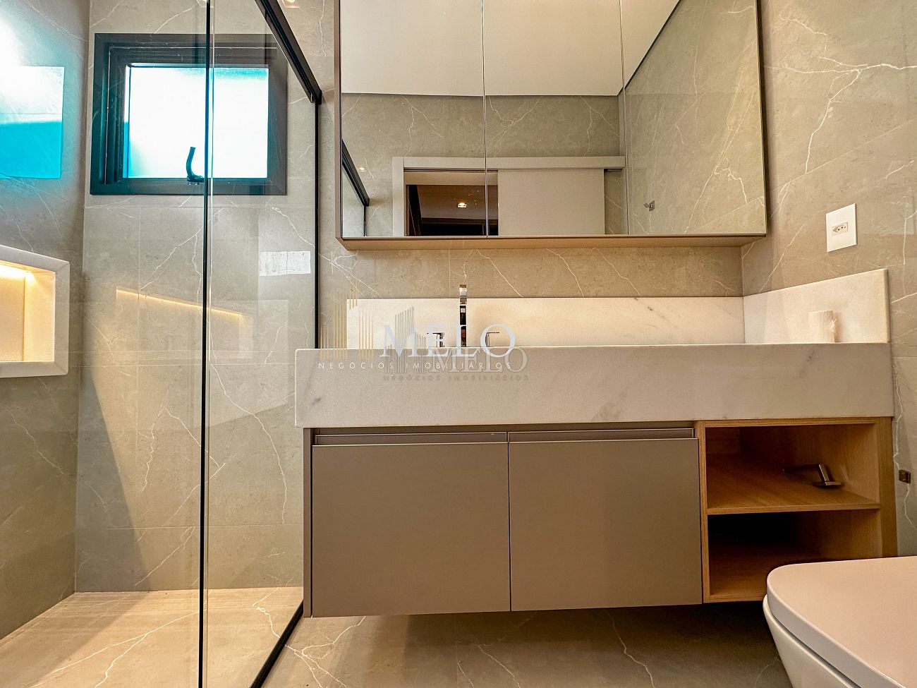 Casa com fachada imponente, porta principal exclusiva da CINEX, sala ampla para 2 ambientes, sendo sala de tv e sala de jantar, lavabo, cozinha americana montada com armários, espaço íntimo com 4 suítes