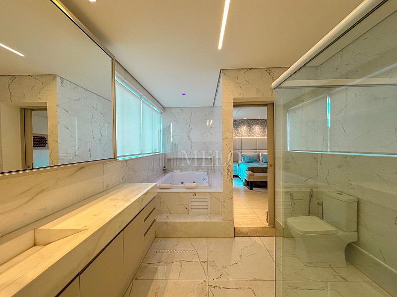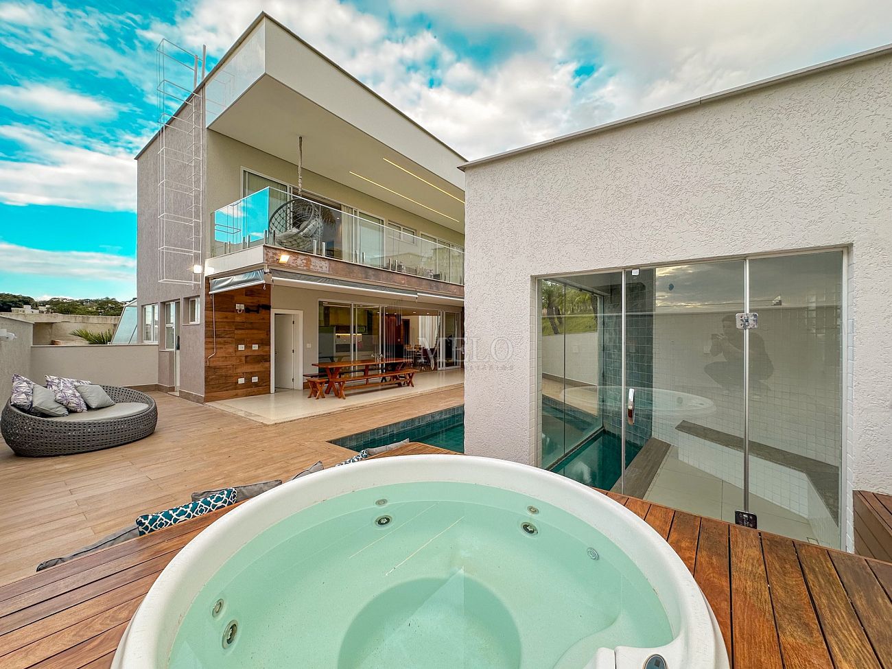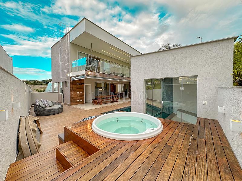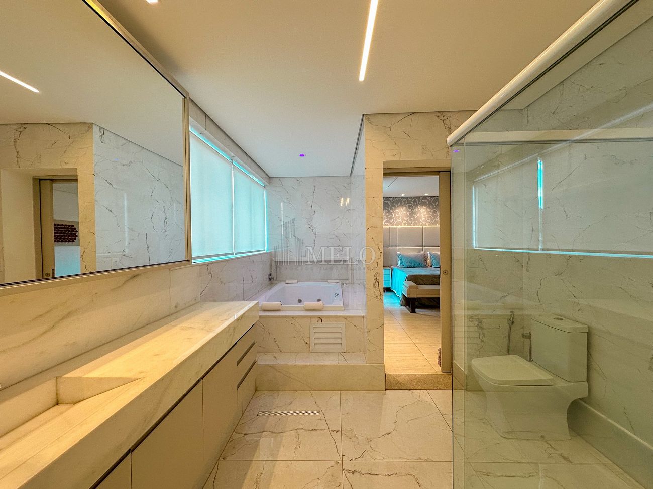 Espaço gourmet, piscina aquecida c/cascata, sauna e banheira de hidromassagem, quarto de apoio e canil.