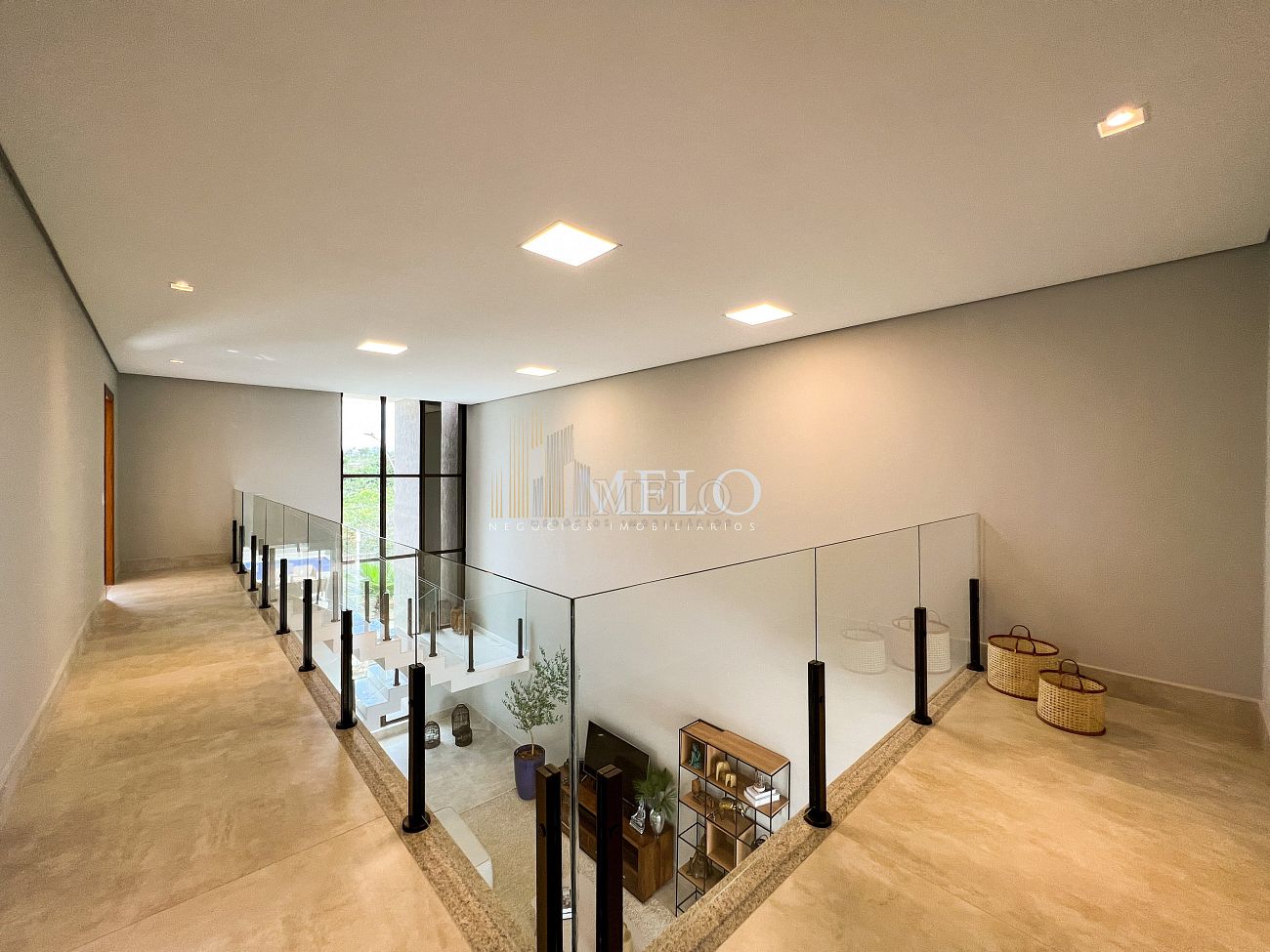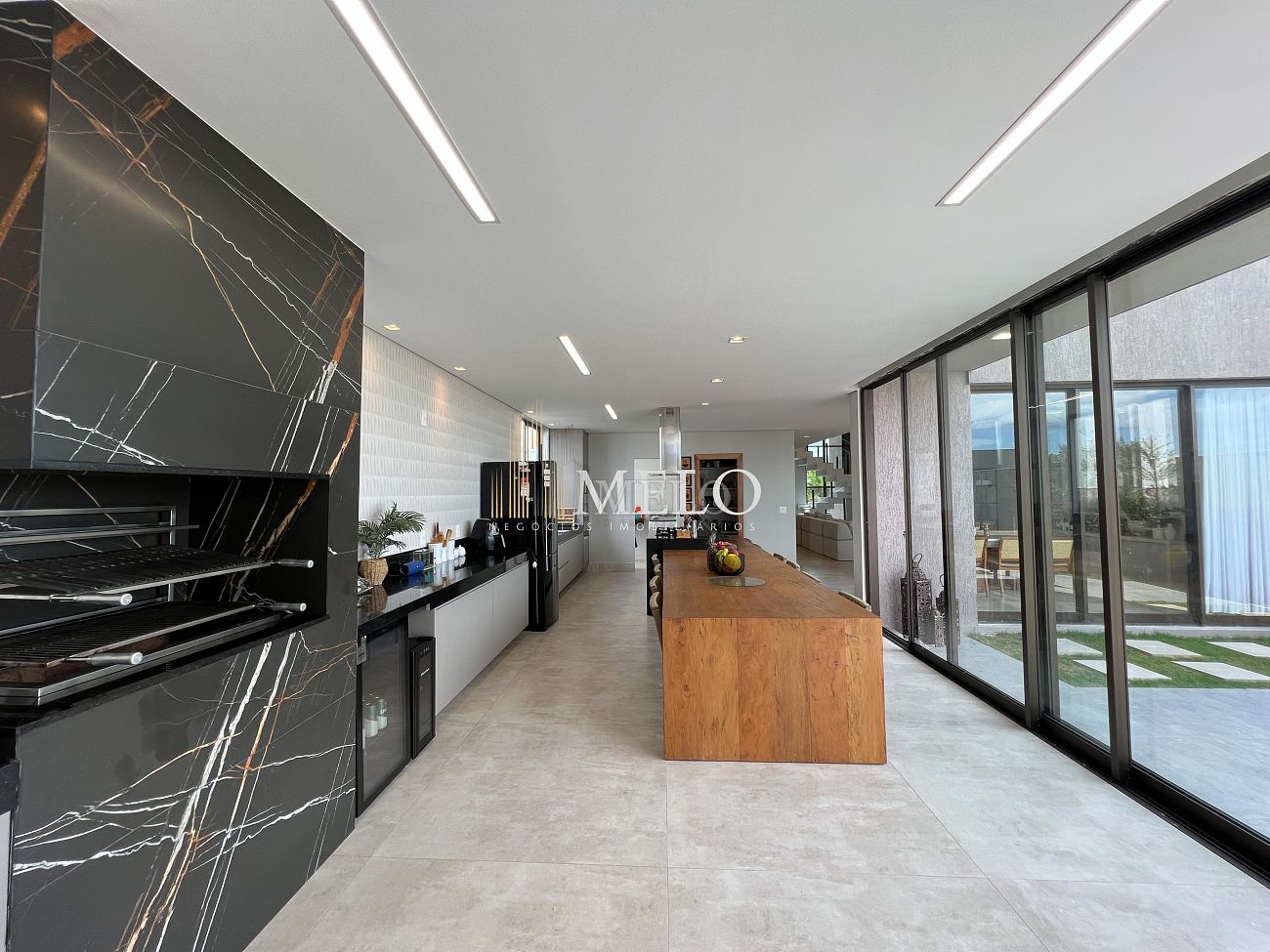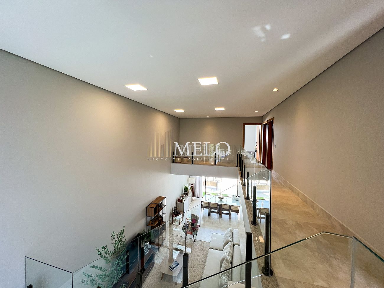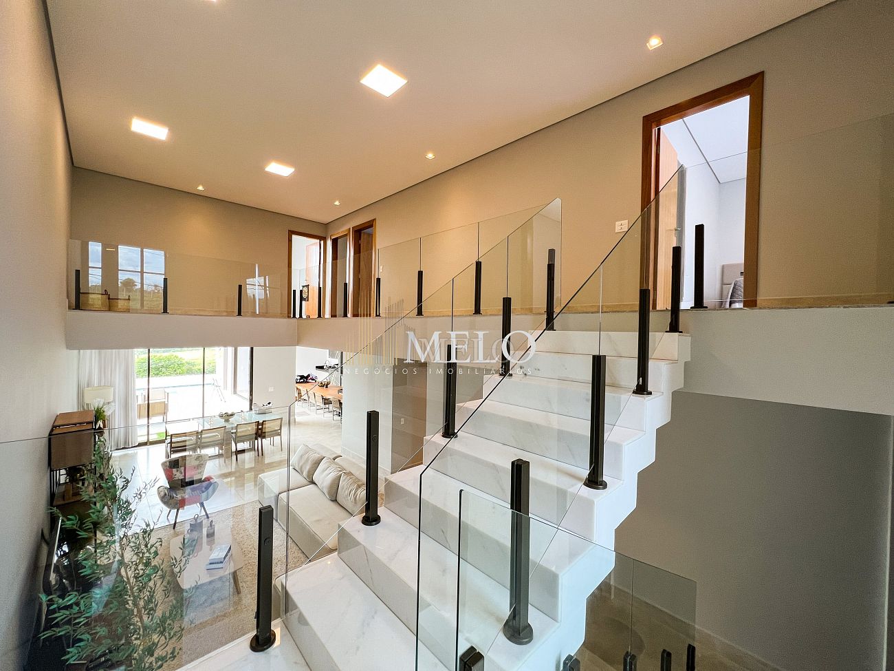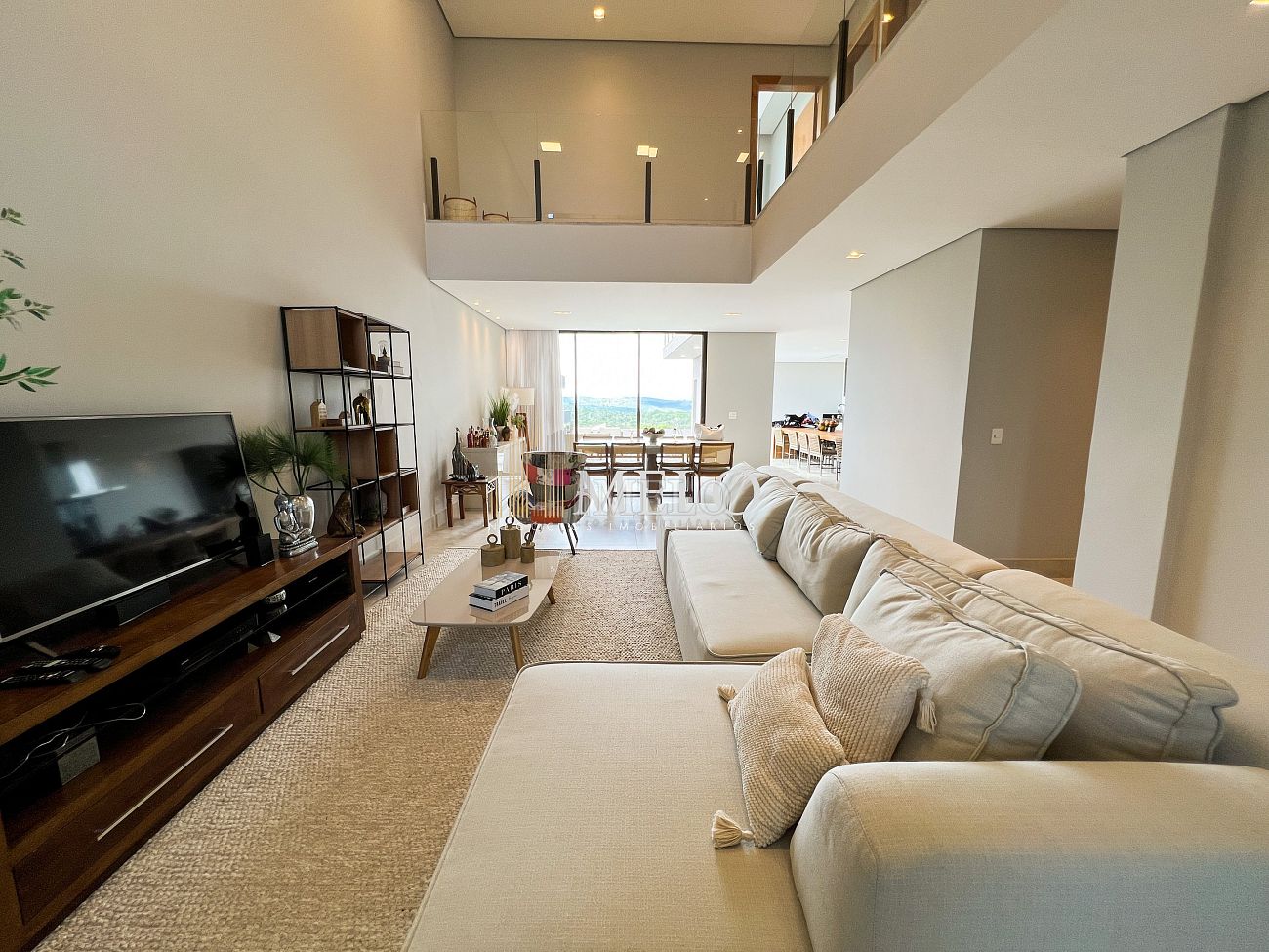 1° PAVIMENTO: Sala ampla com pé direito duplo integrada com cozinha e espaço gourmet. Despensa e área de serviço independente.