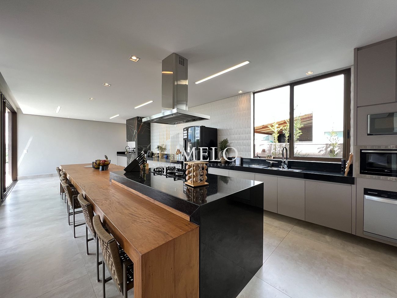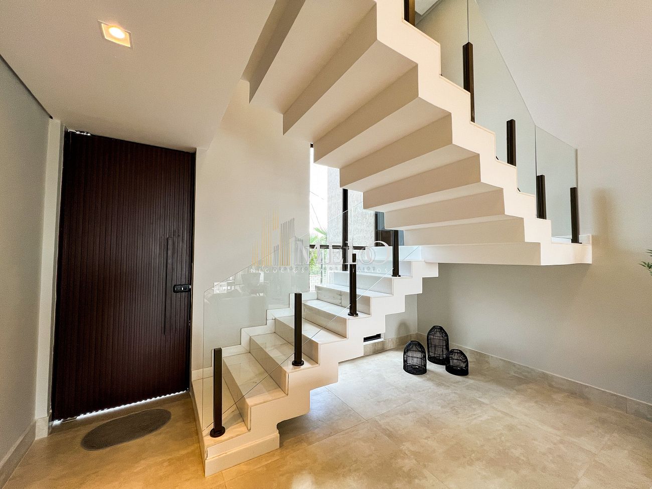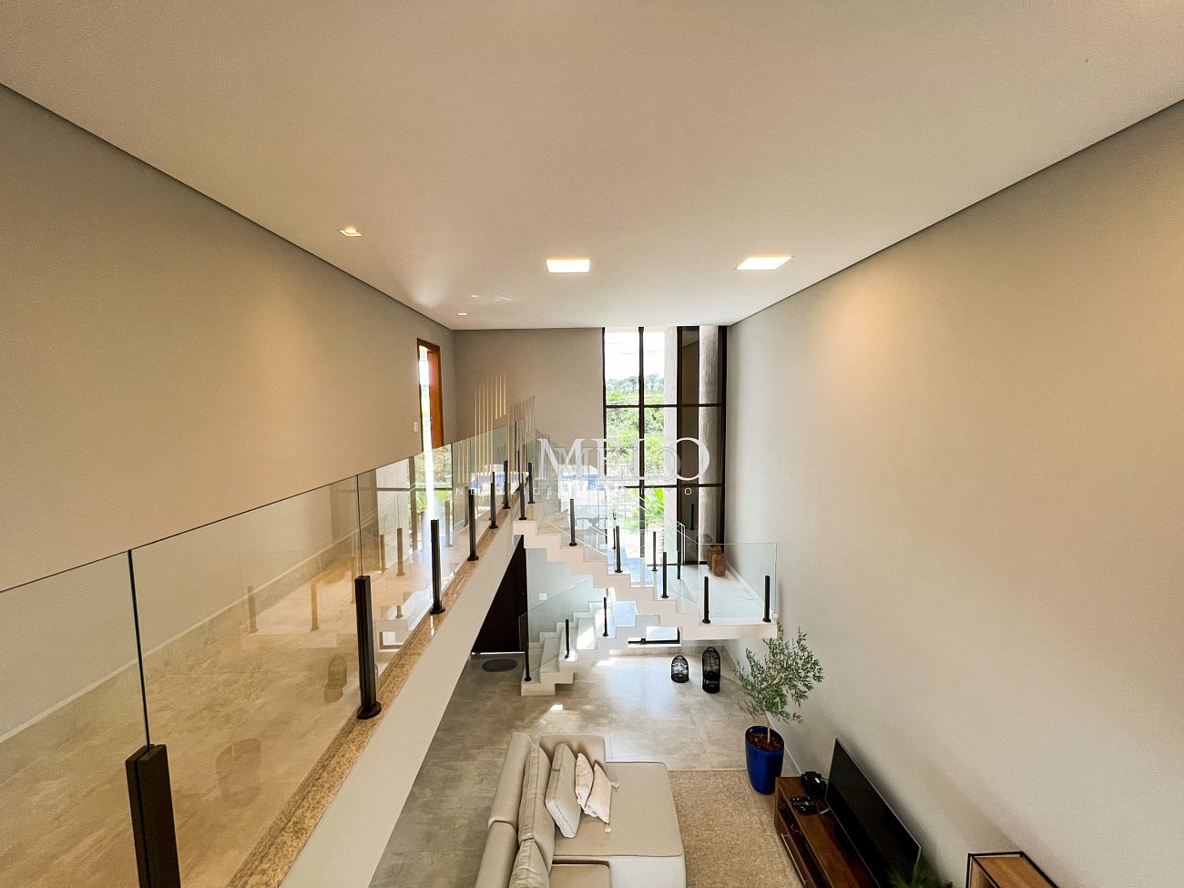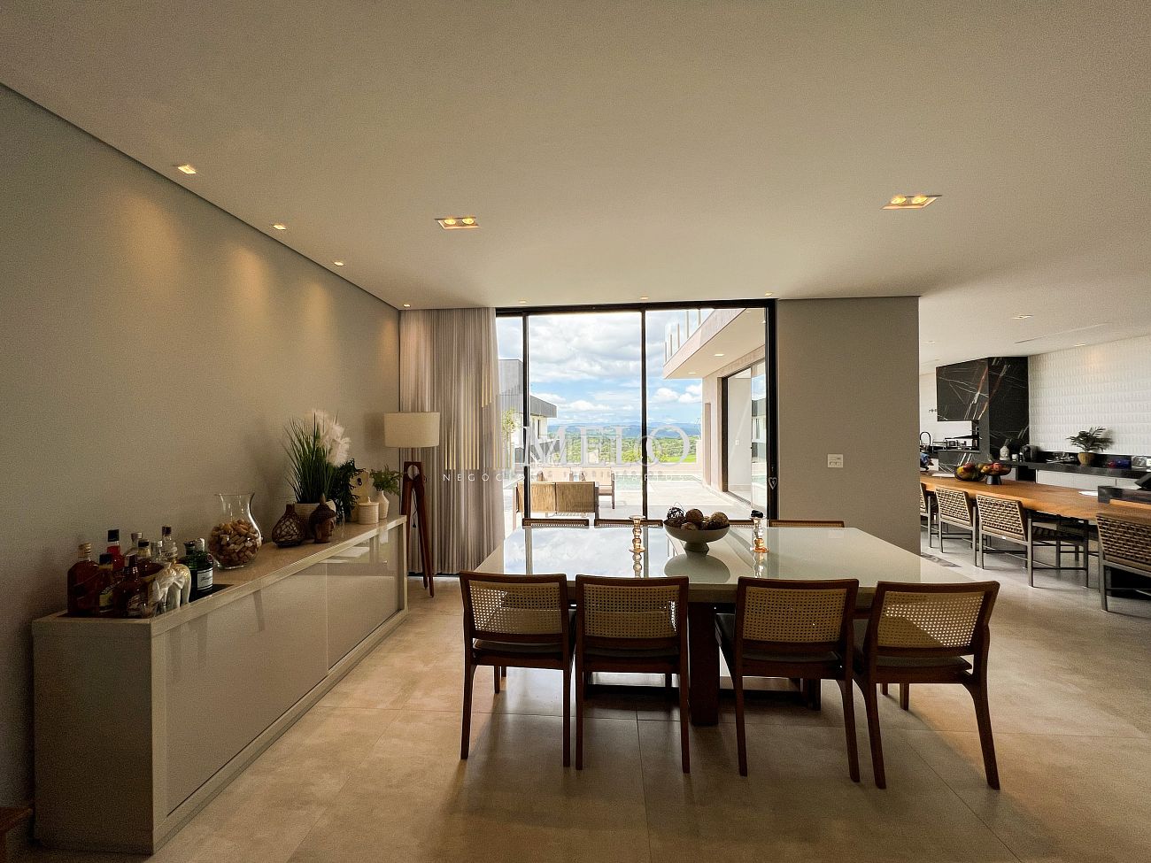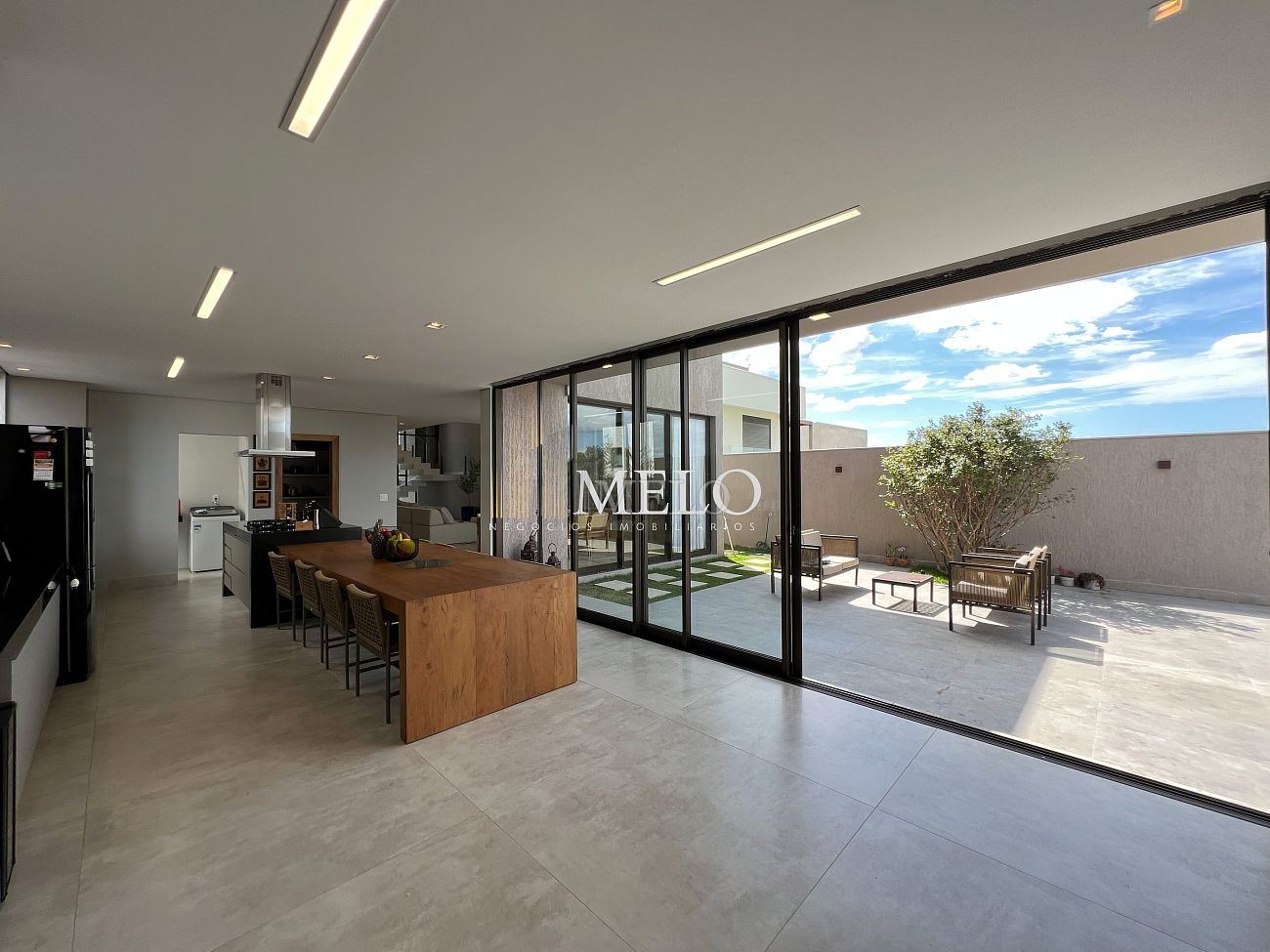 1° PAVIMENTO: Sala ampla com pé direito duplo integrada com cozinha e espaço gourmet. Despensa e área de serviço independente.