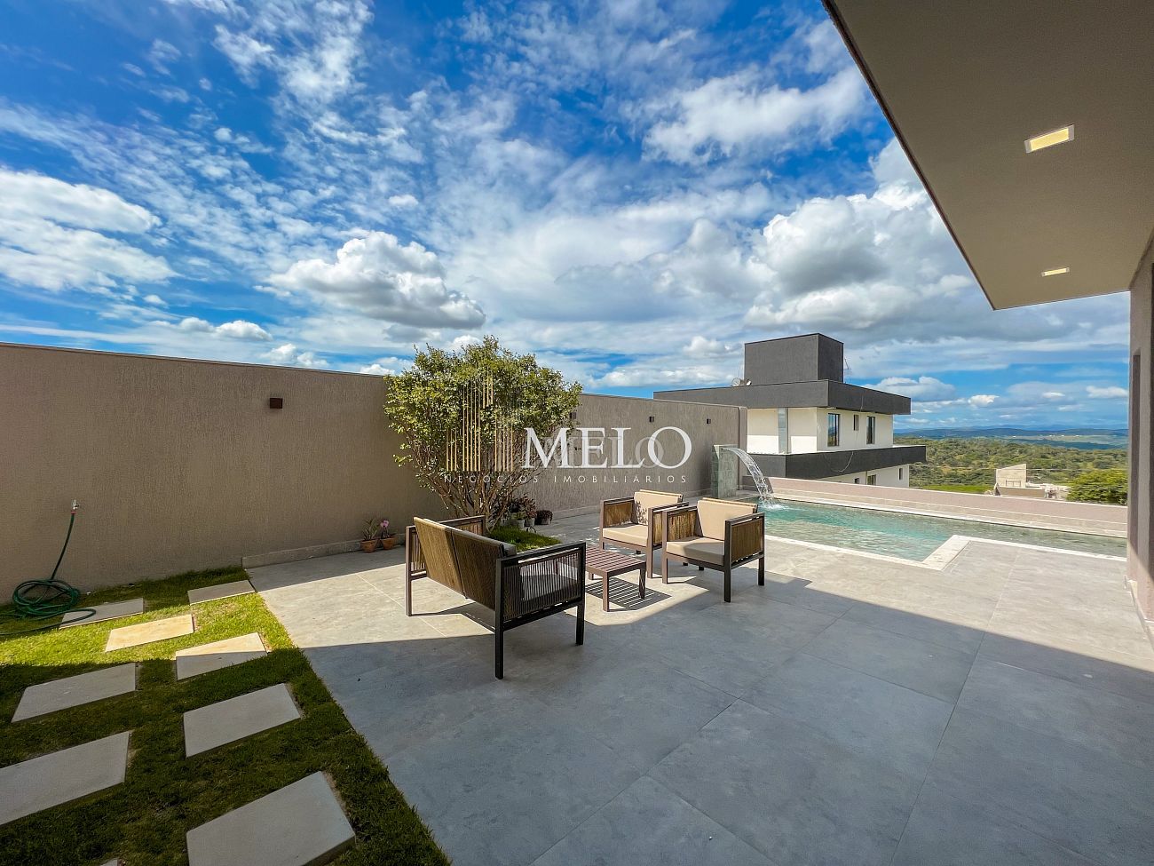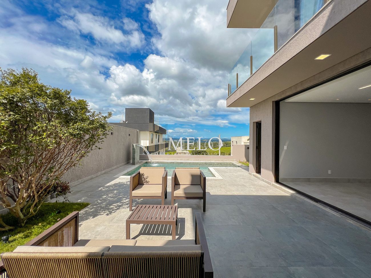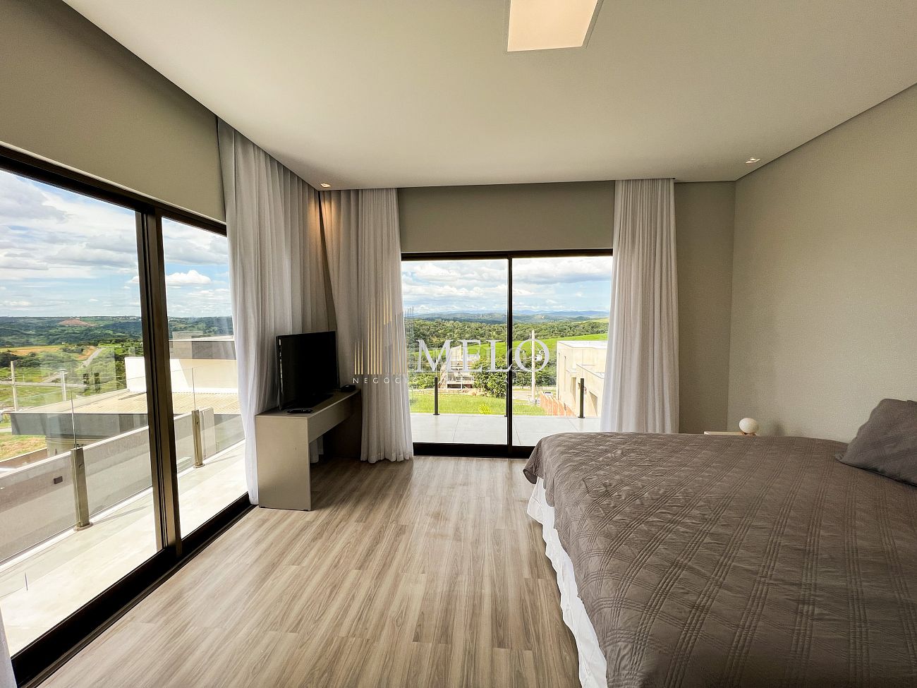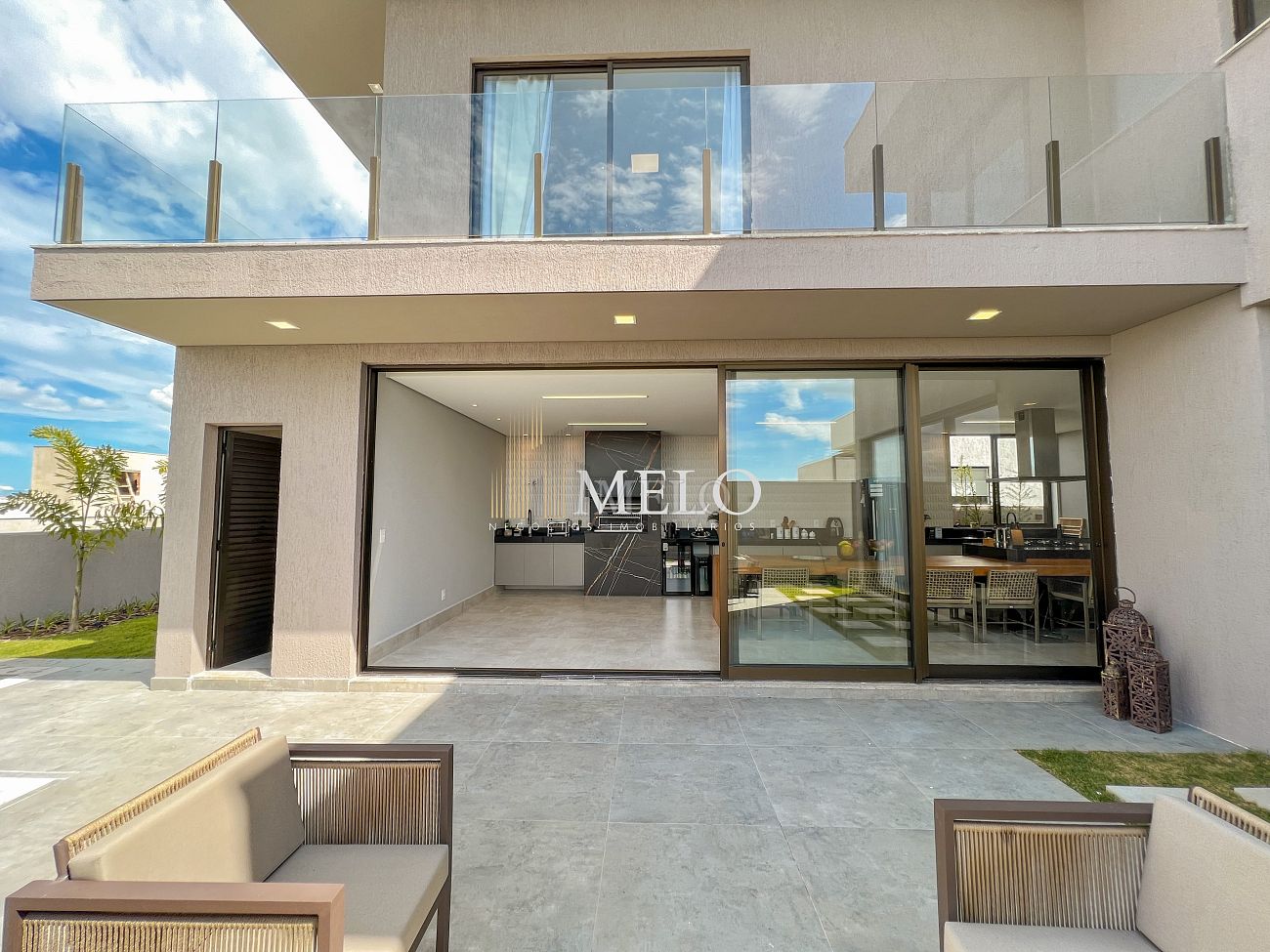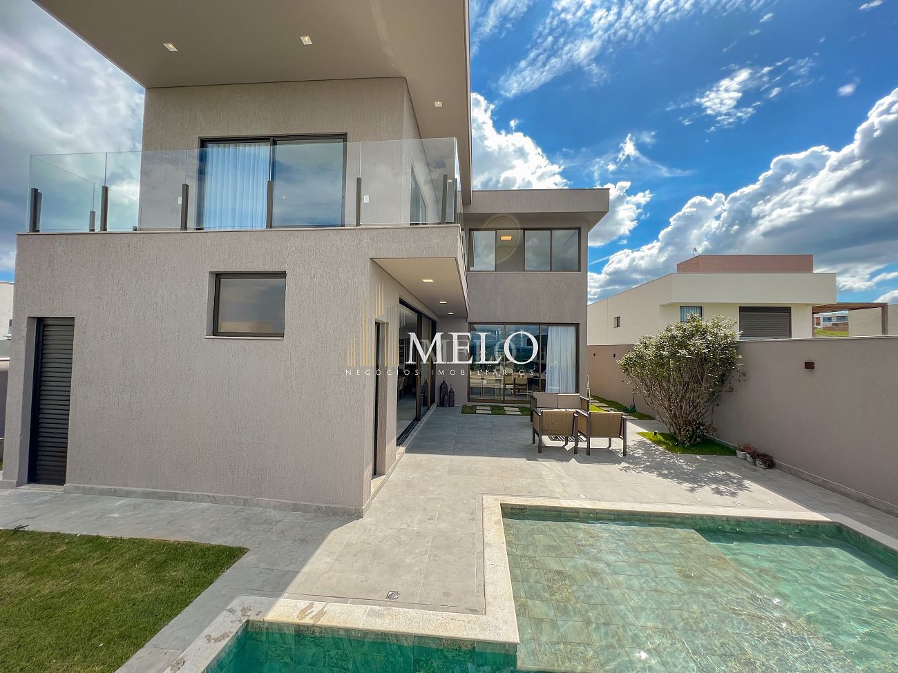 1° PAVIMENTO: Sala ampla com pé direito duplo integrada com cozinha e espaço gourmet. Despensa e área de serviço independente.