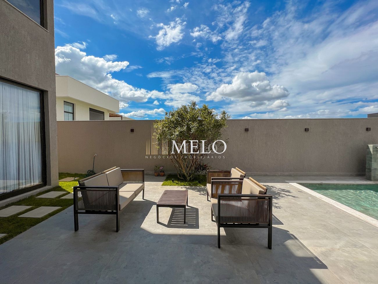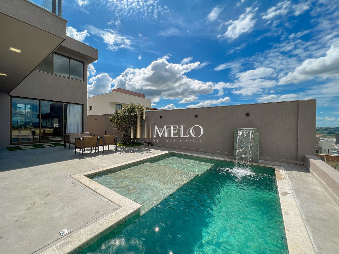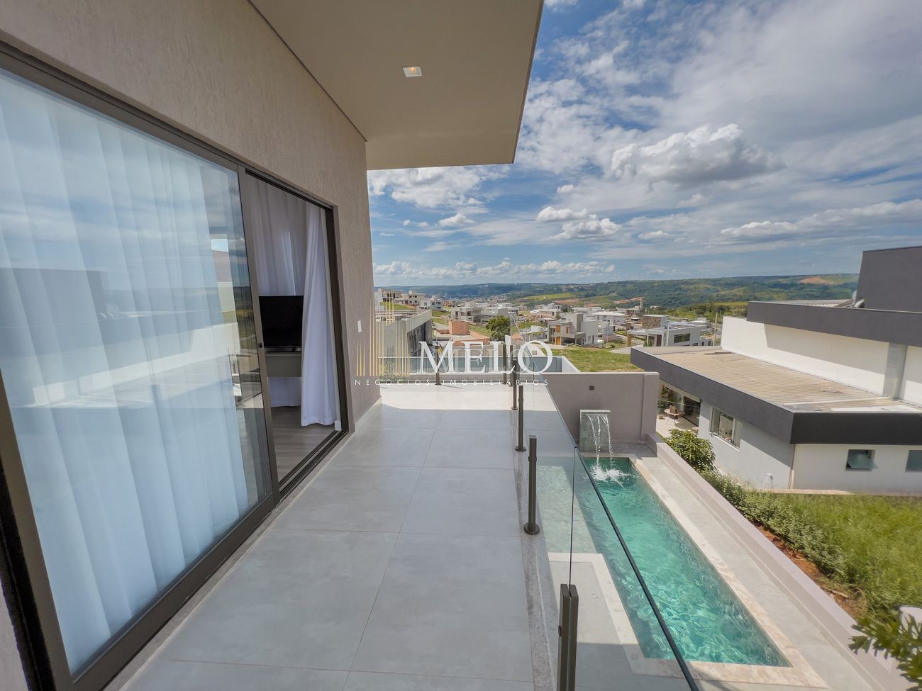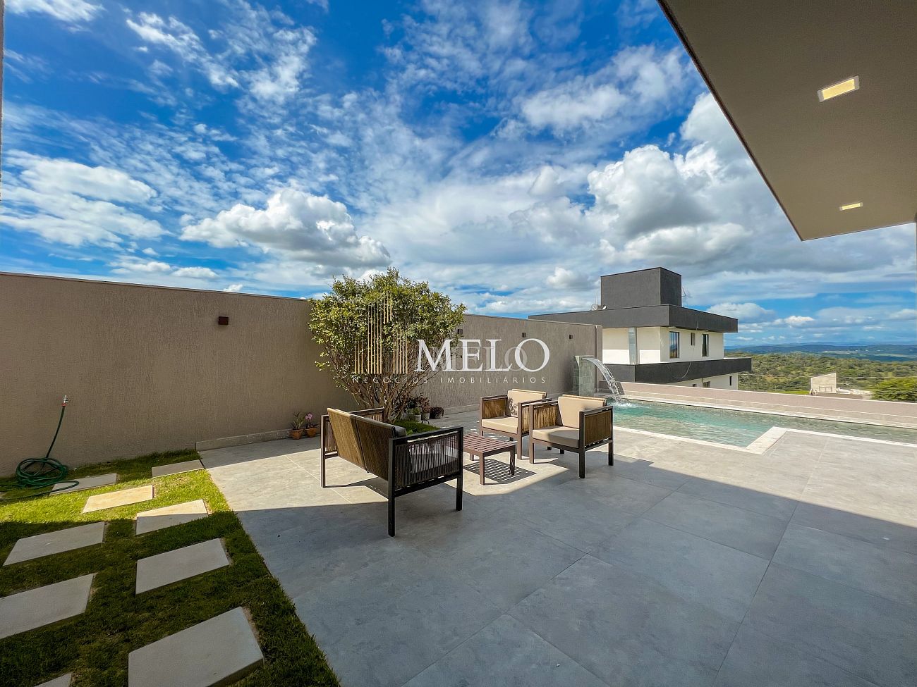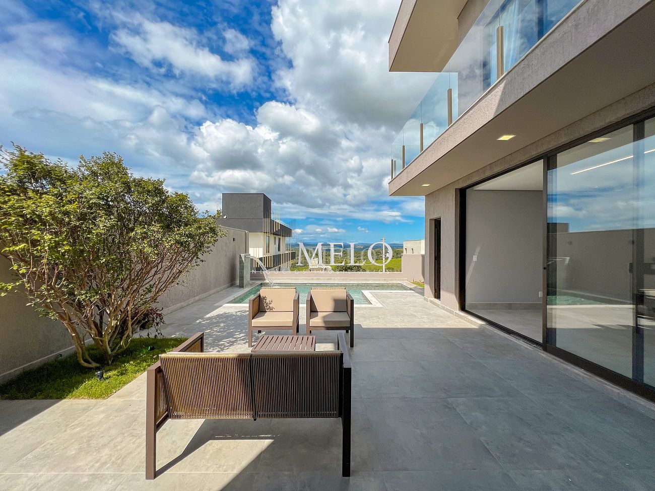 1° PAVIMENTO: Sala ampla com pé direito duplo integrada com cozinha e espaço gourmet. Despensa e área de serviço independente.