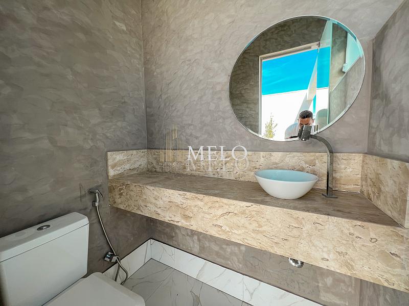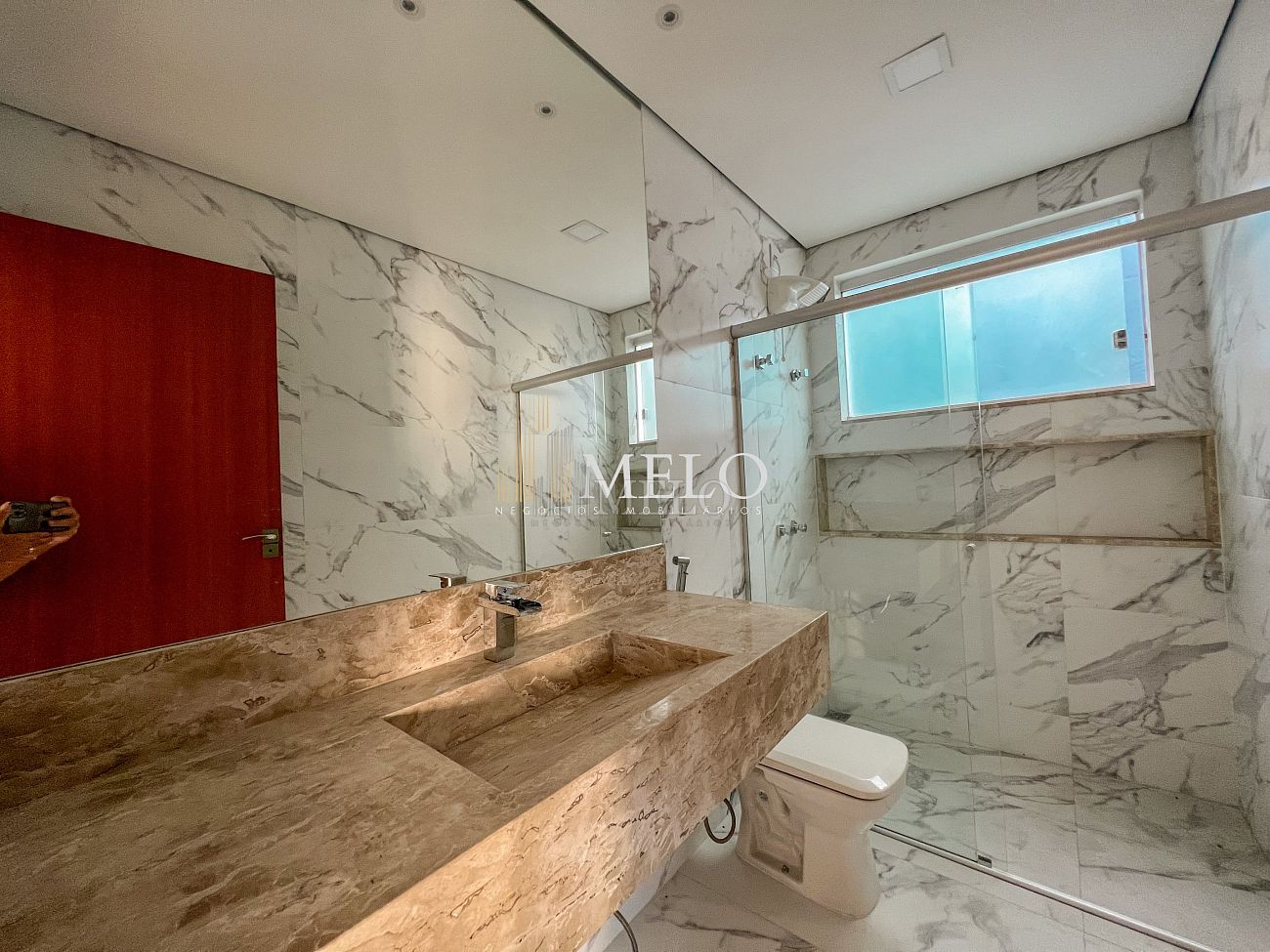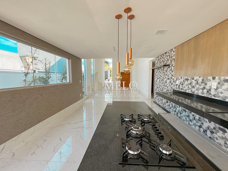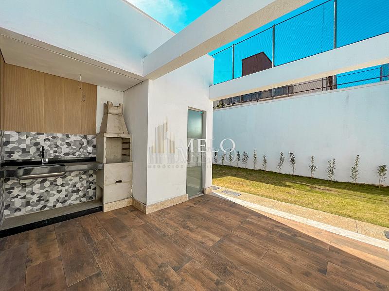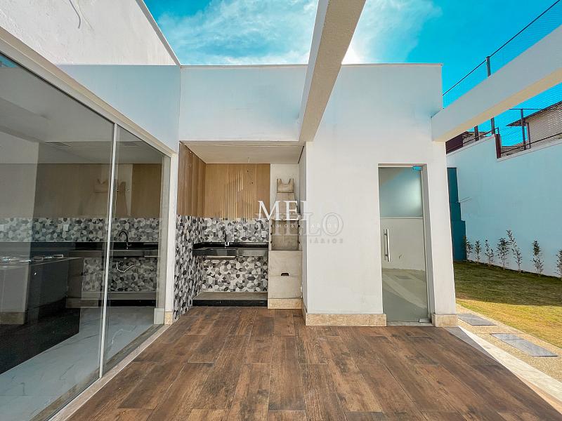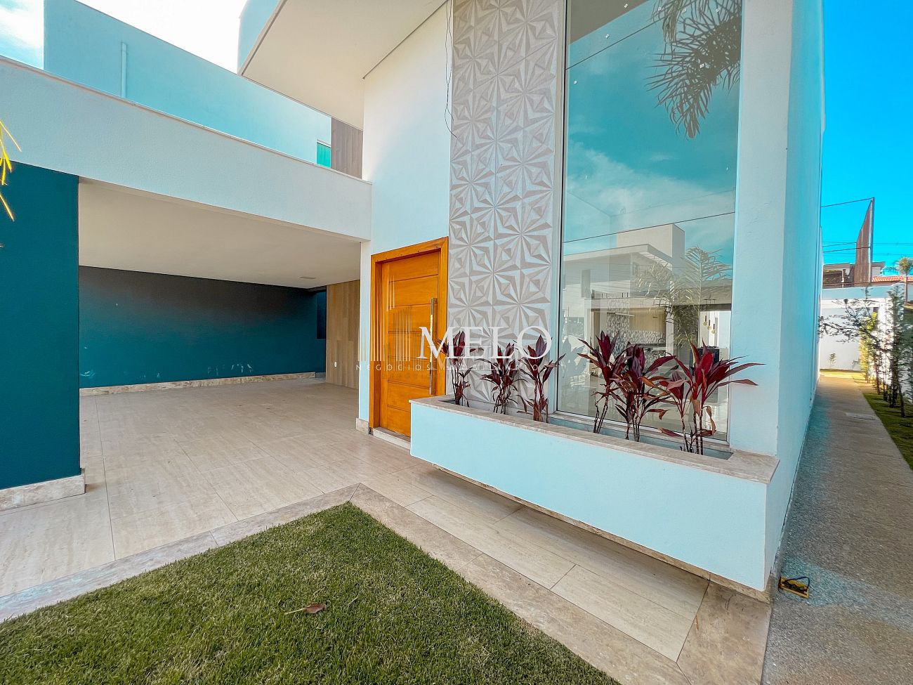 Casa Linear com 03 quartos sendo 01 suite com closet , Sala ampla com integração ao espaço gourmet com churrasqueira, piscina com cascata, lavabo, cozinha, área de serviço, 3