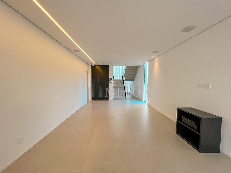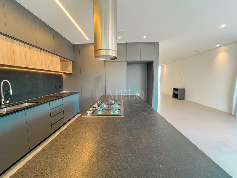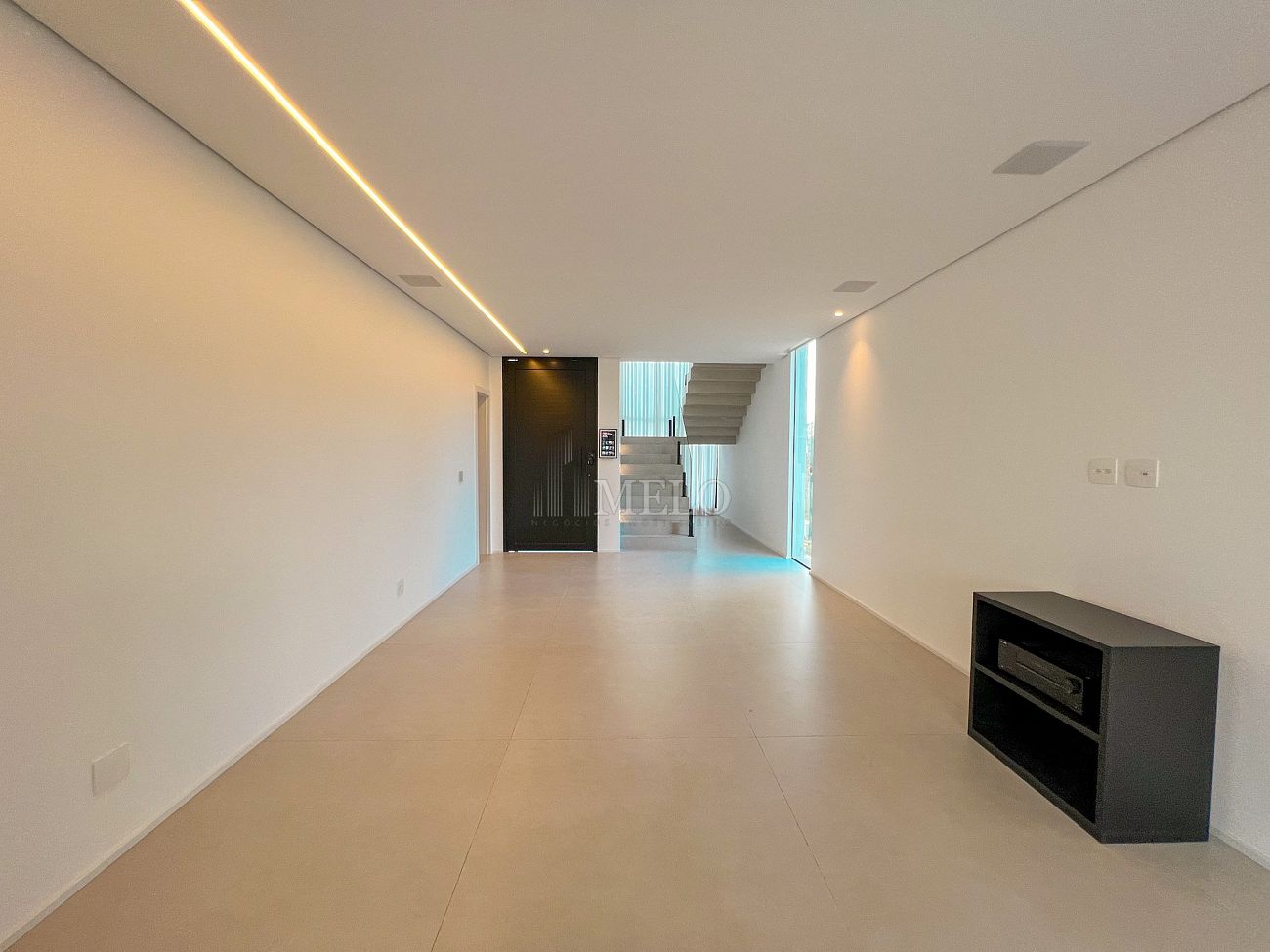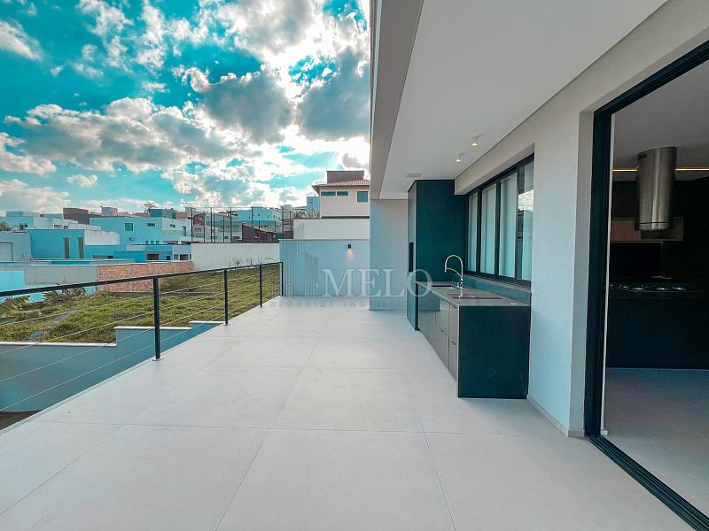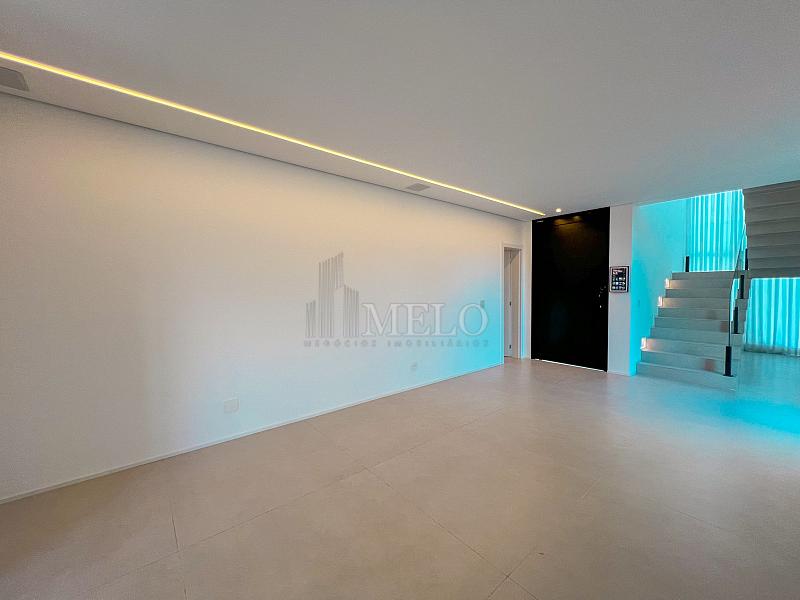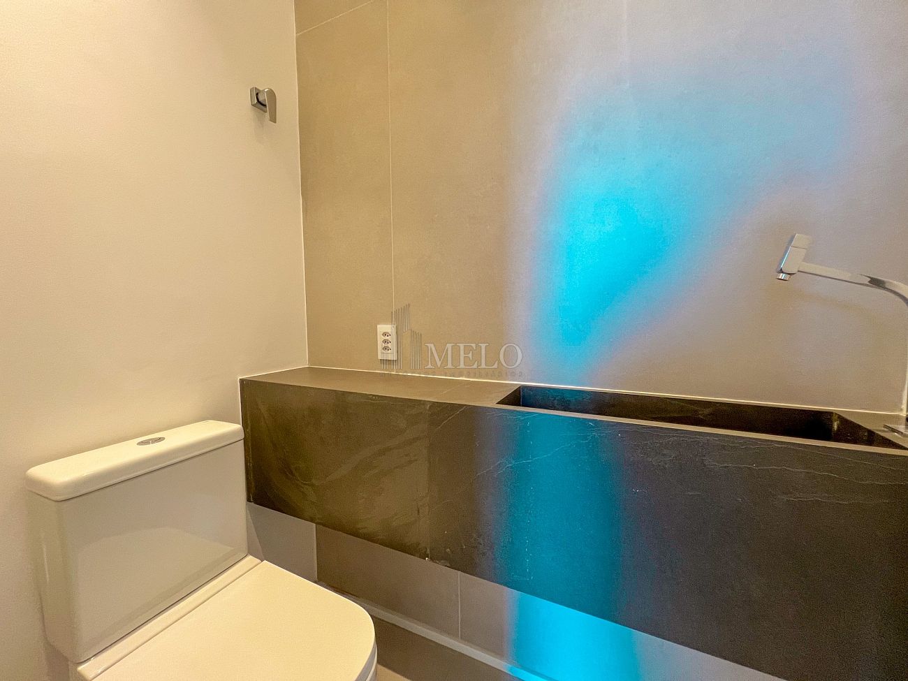1º Andar - Área Interna: Ampla sala para três ambientes com sistema de som 5.1, lavabo de alto padrão, e cozinha em ilha equipada com cooktop, coifa e cuba dupla gourmet. Área de serviços com duas bancadas e escadaria com pé direito duplo. Espaço gourmet integrado com churrasqueira a carvão, deck monocromático e lavabo externo. Infraestrutura disponível para banheira de 8 lugares e 4 vagas de garagem, com ponto de conexão para carros elétricos.