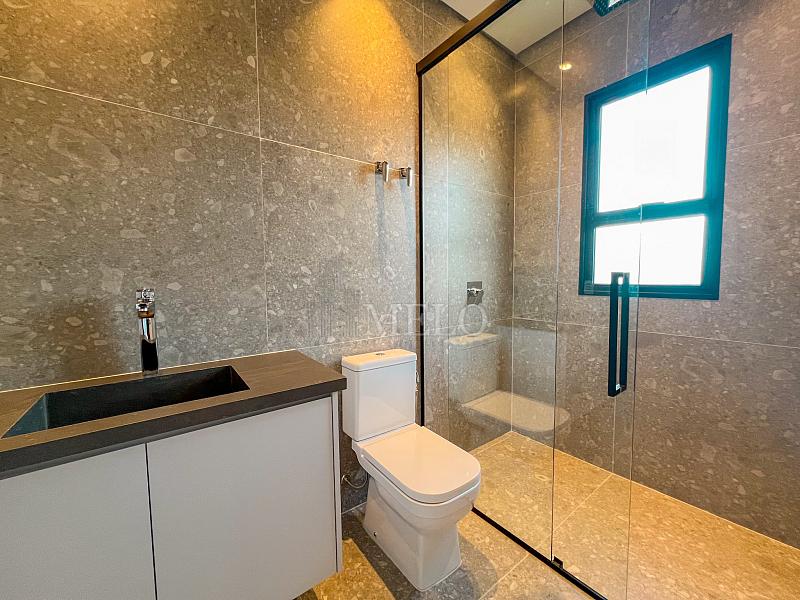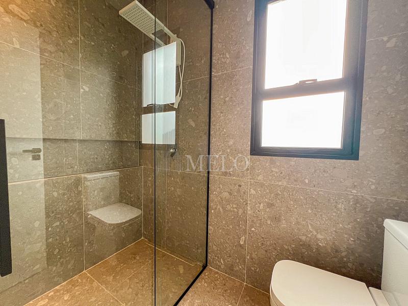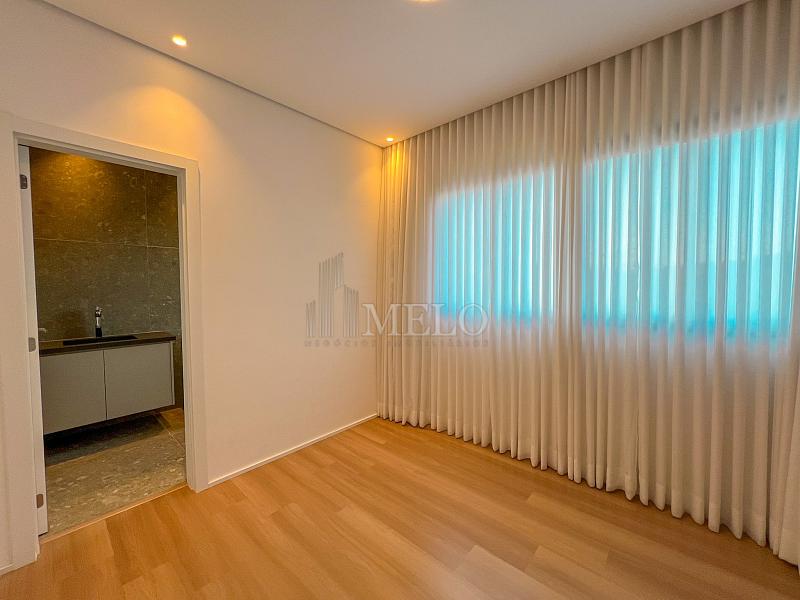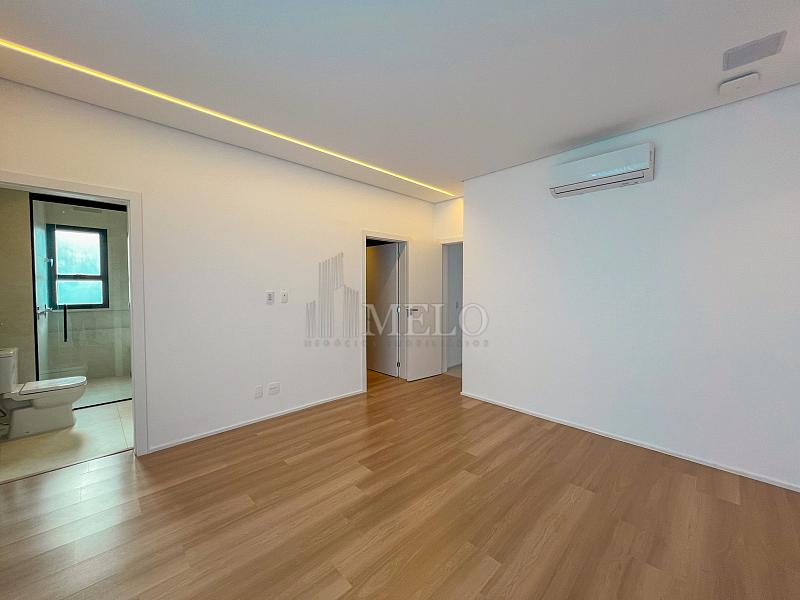 2º Andar - Conforto e Privacidade: Contém 2 semi-suítes com armários planejados, 1 suíte com ar condicionado e armários, e uma suíte master com varanda privativa, closet e banheiro luxuoso com hidromassagem.