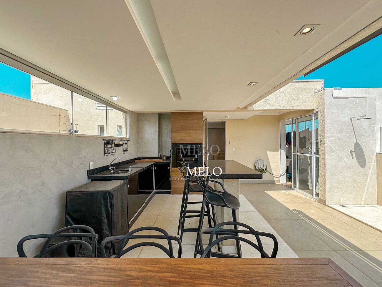 2º pavimento: Sala de tv, lavabo, área de serviço independente, terraço livre com ducha e espaço gourmet com churrasqueira carvão.