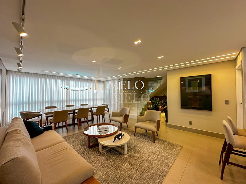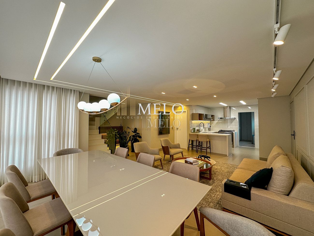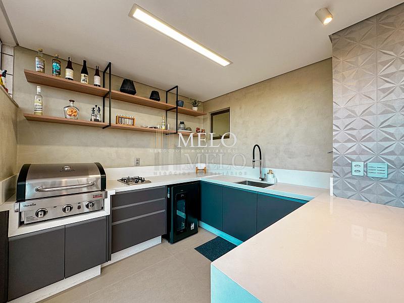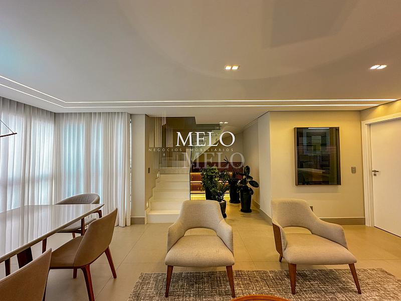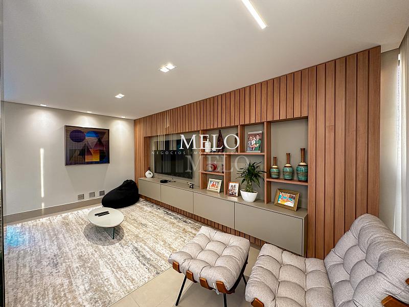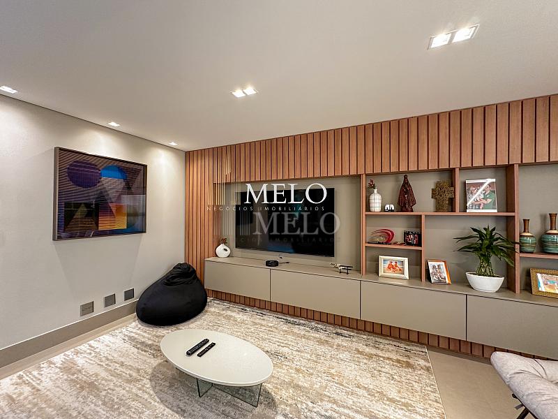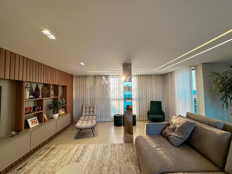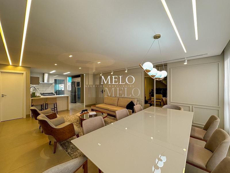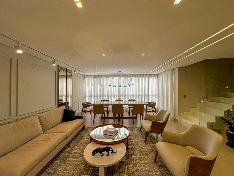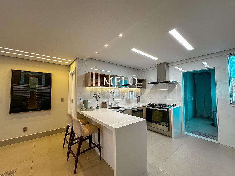 1° Pavimento: Sala ampla para dois ambientes, cozinha americana com armários, cooktop, forno, microondas, geladeira e bancada em quartzo branco, lavanderia com banheiro, banheiro social, 3 quartos com cama e armários planejados,1 suíte master com clouset.