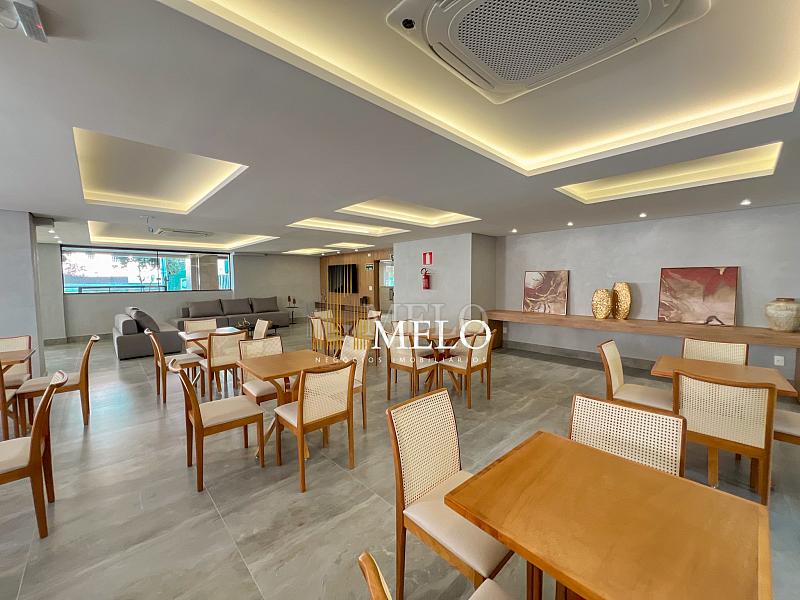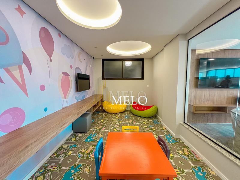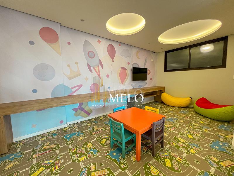 Lazer completo com salão de festas, cozinha gourmet, espaço kids, espaço fitness, piscina com raia, piscina infantil, sauna, salão de jogos e praça verde